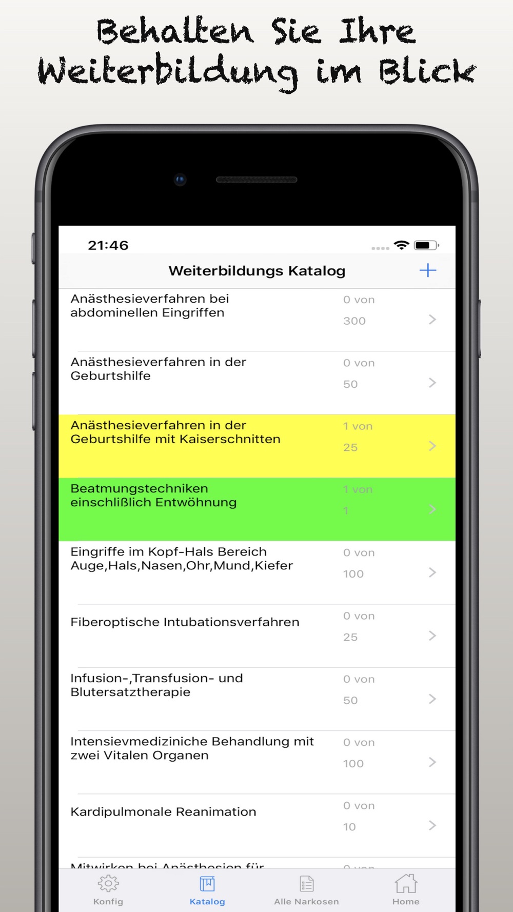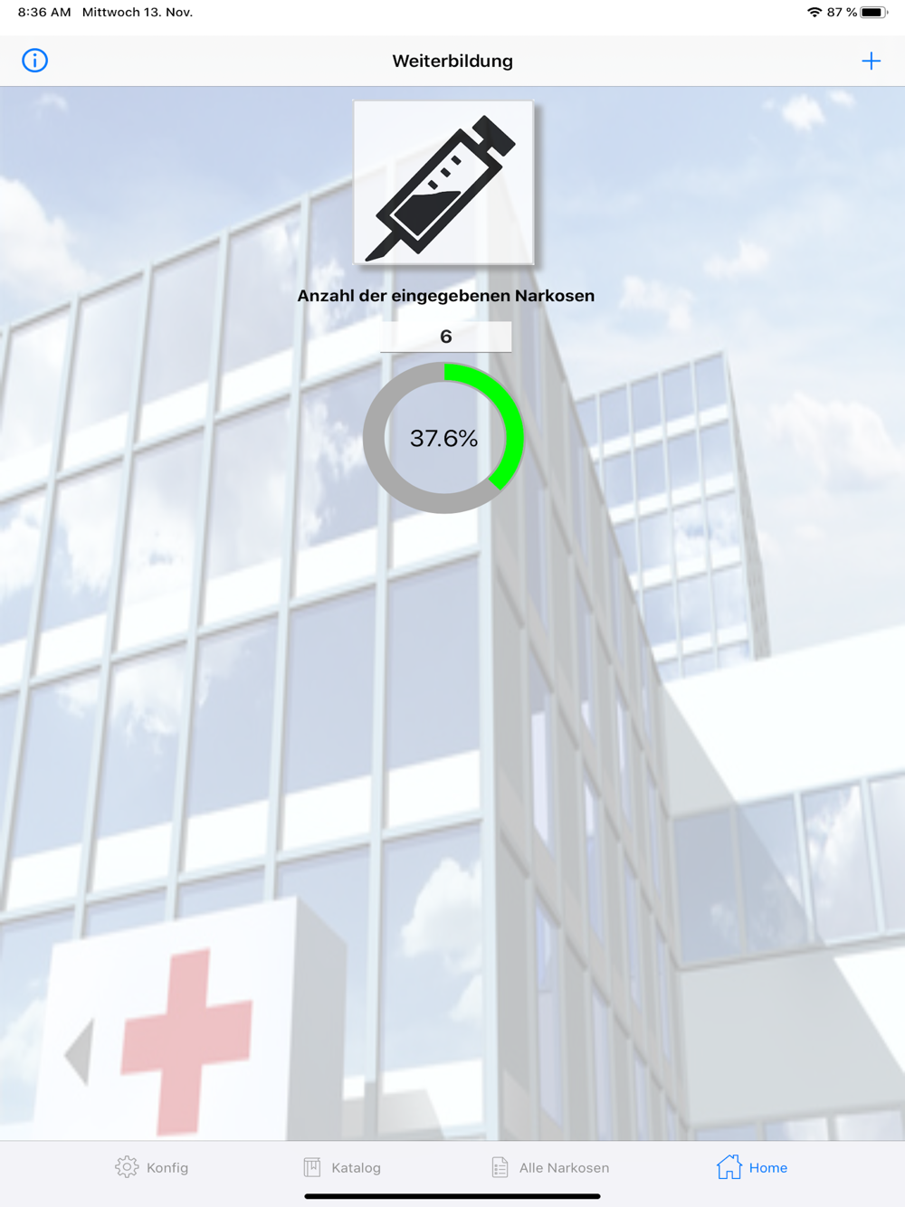 Sie sehen immer auf der Startseite den aktuellen Stand wieviel Narkosen Sie noch bis zur Fachartzprüfung benötigen.