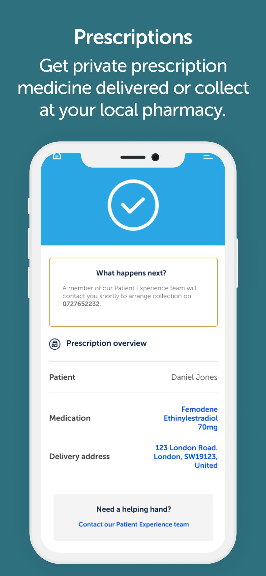 If your clinician issues you with a prescription, choose to have the medication delivered to your home or place of work (4 hours delivery time London, next day rest of UK), or have it sent to your local pharmacy to pick up when it suits you.