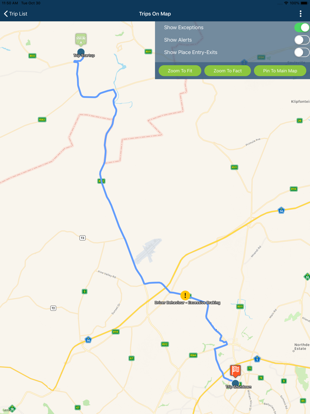 Our interactive map display allows the plotting of all data generated from our MHub telematics devices that includes trips, alerts, POI data and driver behavior data.