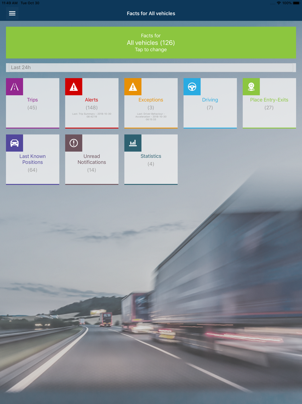 Our MZone Fleet mobile application summarizes key fleet statistics in a single view where users can drill down to vehicle details with a single touch and setup profiles to monitor utilization, setup geofence rules, action alerts and notifications to name a few.