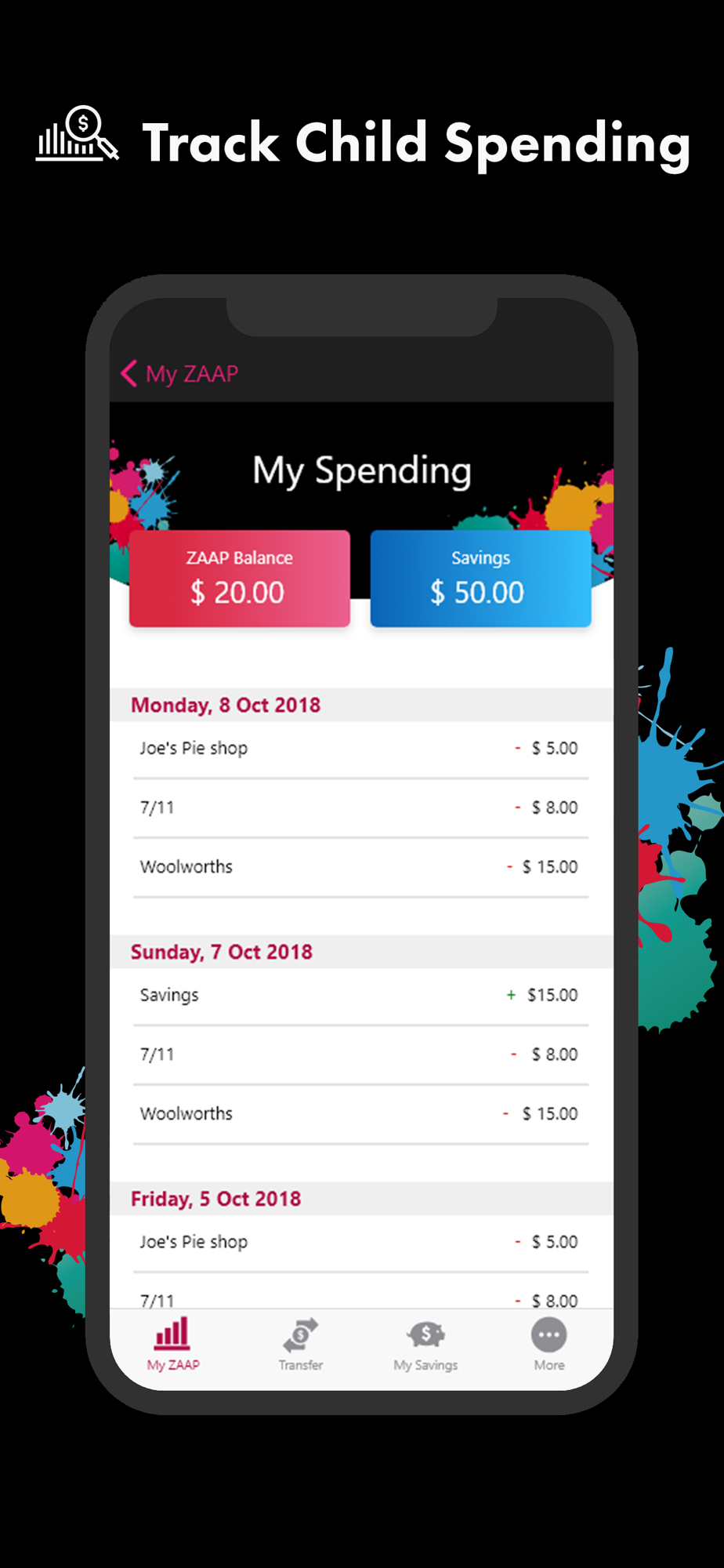 ZAAP is a safe and convenient way for parents to teach their children financial responsibility and good money management skills whilst maintaining control and peace of mind.