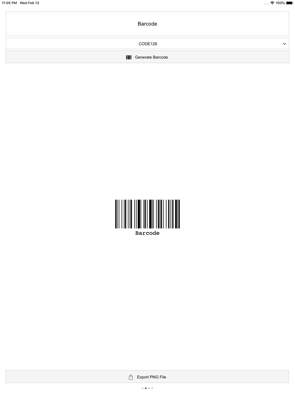 Multi Barcode Generator generates following barcodes: CODE128 (A, B, C), EAN (13, 8, 5, 2), UPC, ITF (14), MCI, CODE39. To generate barcode, place a text to be encoded into the “Text to encode” field, select a barcode symbology type (Code128, EAN-13, UPC, etc.) in the pop-up menu and press the “Generate barcode” button. Swipe right to scan barcode and decode its content. Swipe left once to adjust barcode size and swipe left again to insert wider merges of the PNG image if necessary.