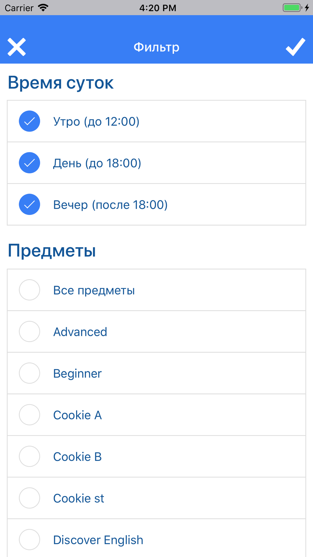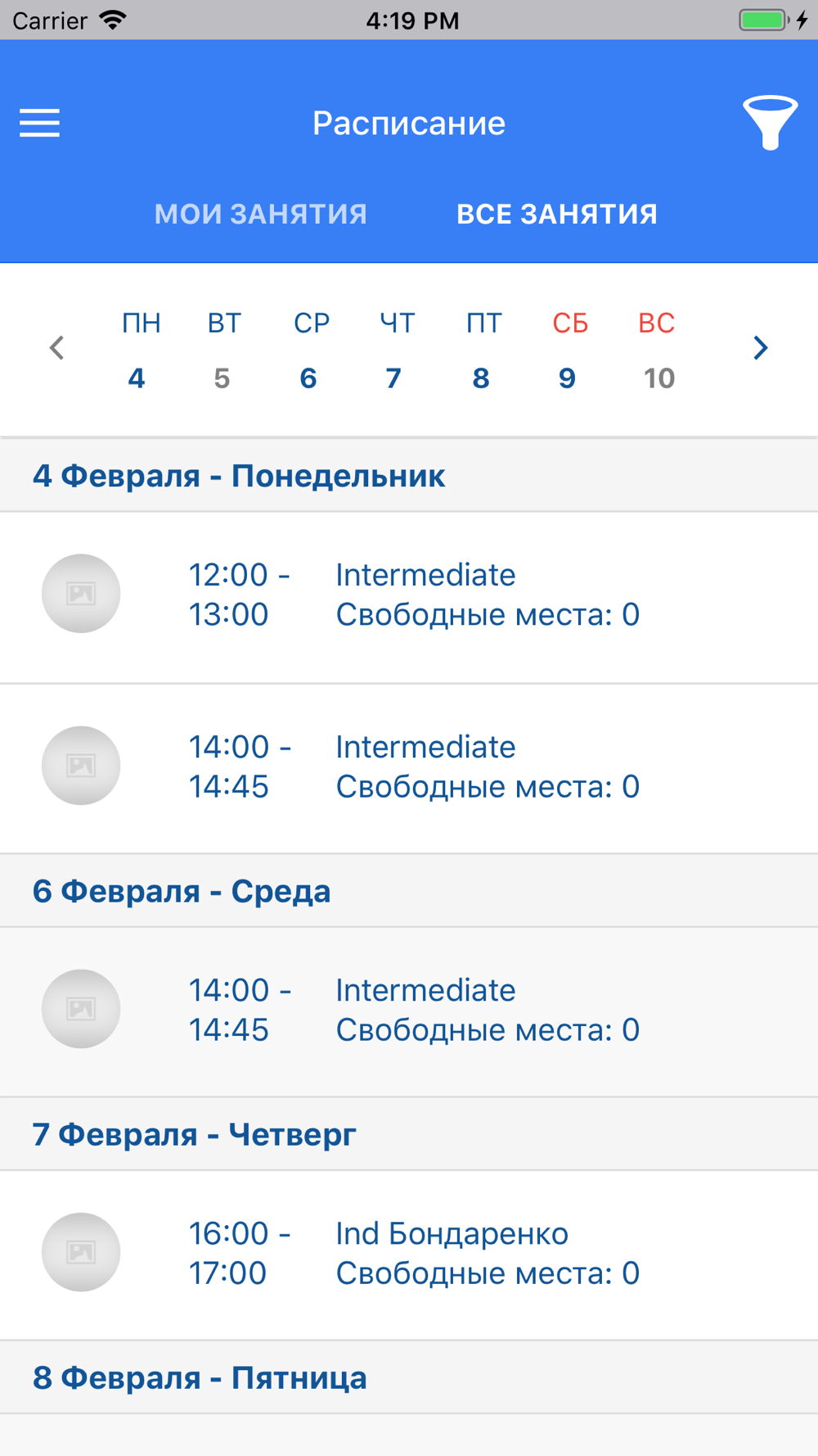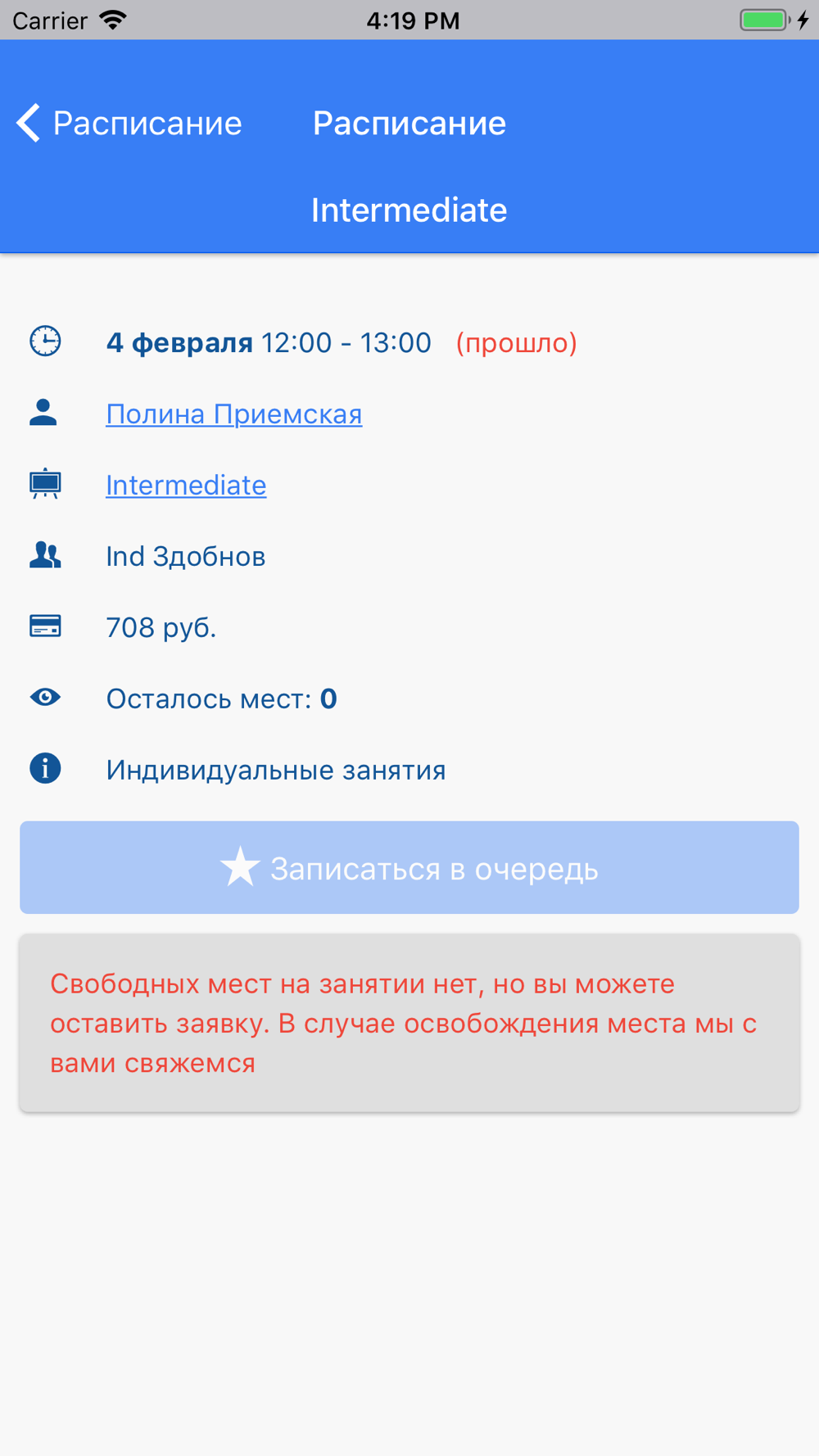 - Расписание занятий/переносов занятий