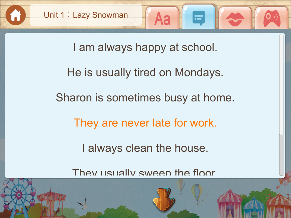 *歌曲:活潑可愛的歌曲動畫搭配文字學習,一起唱唱跳跳,讓英語學習之旅充滿樂趣!