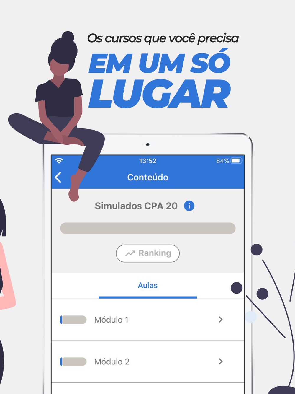 O Eu me Banco é uma plataforma digital educacional destinada a quem deseja realizar cursos e simulados para certificação financeira e aprofundamento na área. Esta versão aplicativo é denominada Sala Virtual do Aluno.