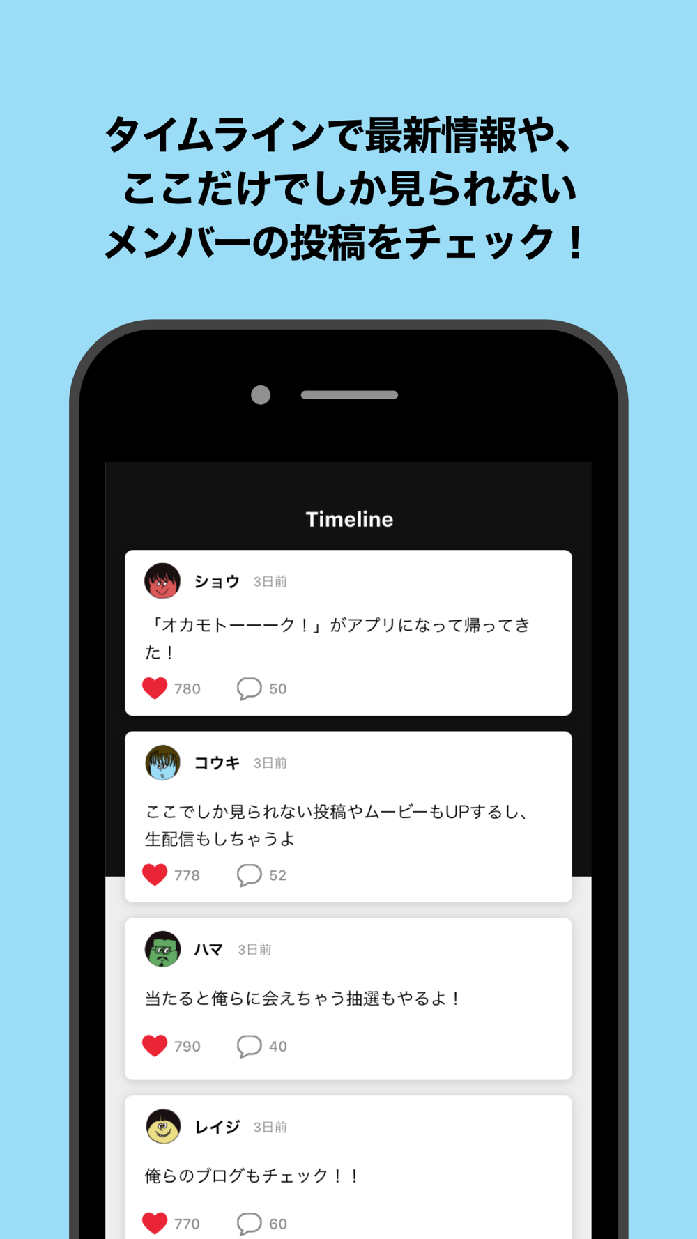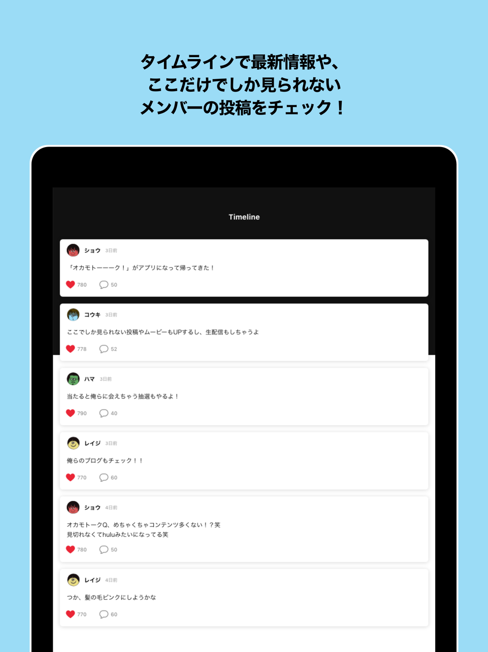 ニュースなどの公式情報はもちろん、メンバーのつぶやきや投稿、