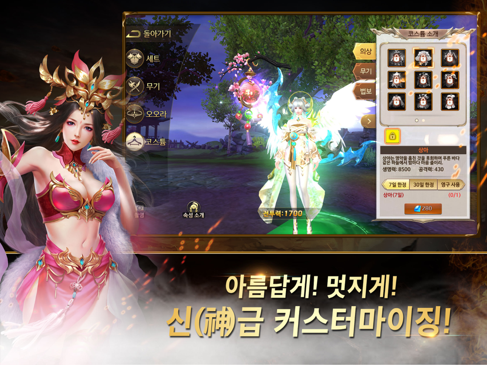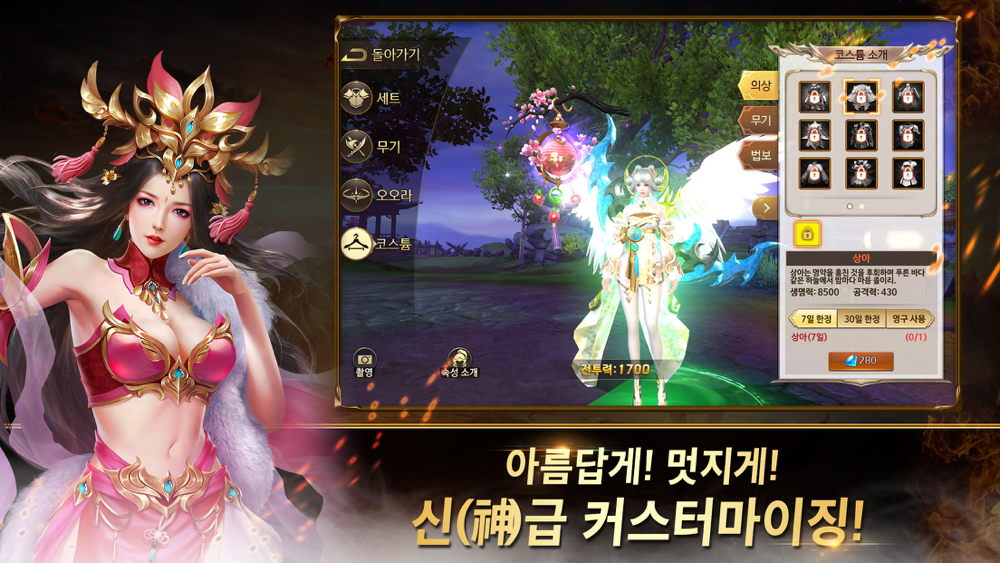 - 세트, 무기, 오오라, 코스튬 등으로나만의 멋진 무장을 탄생시키세요!