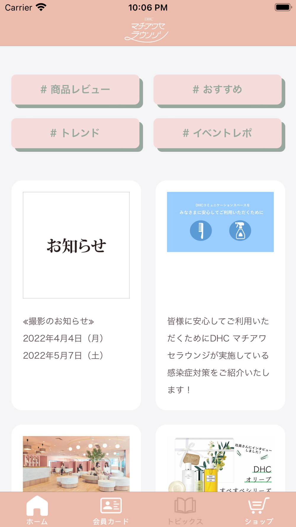 会員証の提示ツールとしてご活用いただく他、普段からDHC マチアワセラウンジをご愛用下さっている皆さんにとって、役立つ情報が満載!