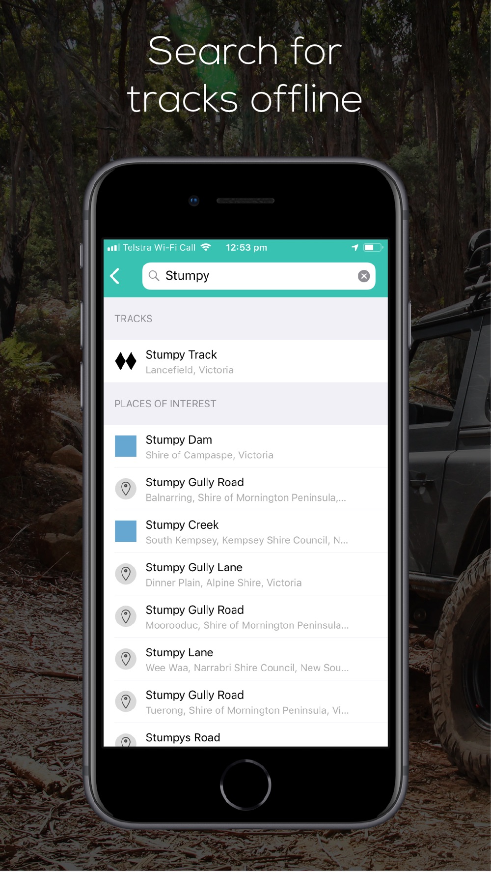 - Search from 4,900+ assessed 4wd tracks and 8,000+ campsites, parks, towns and places – all whilst offline.