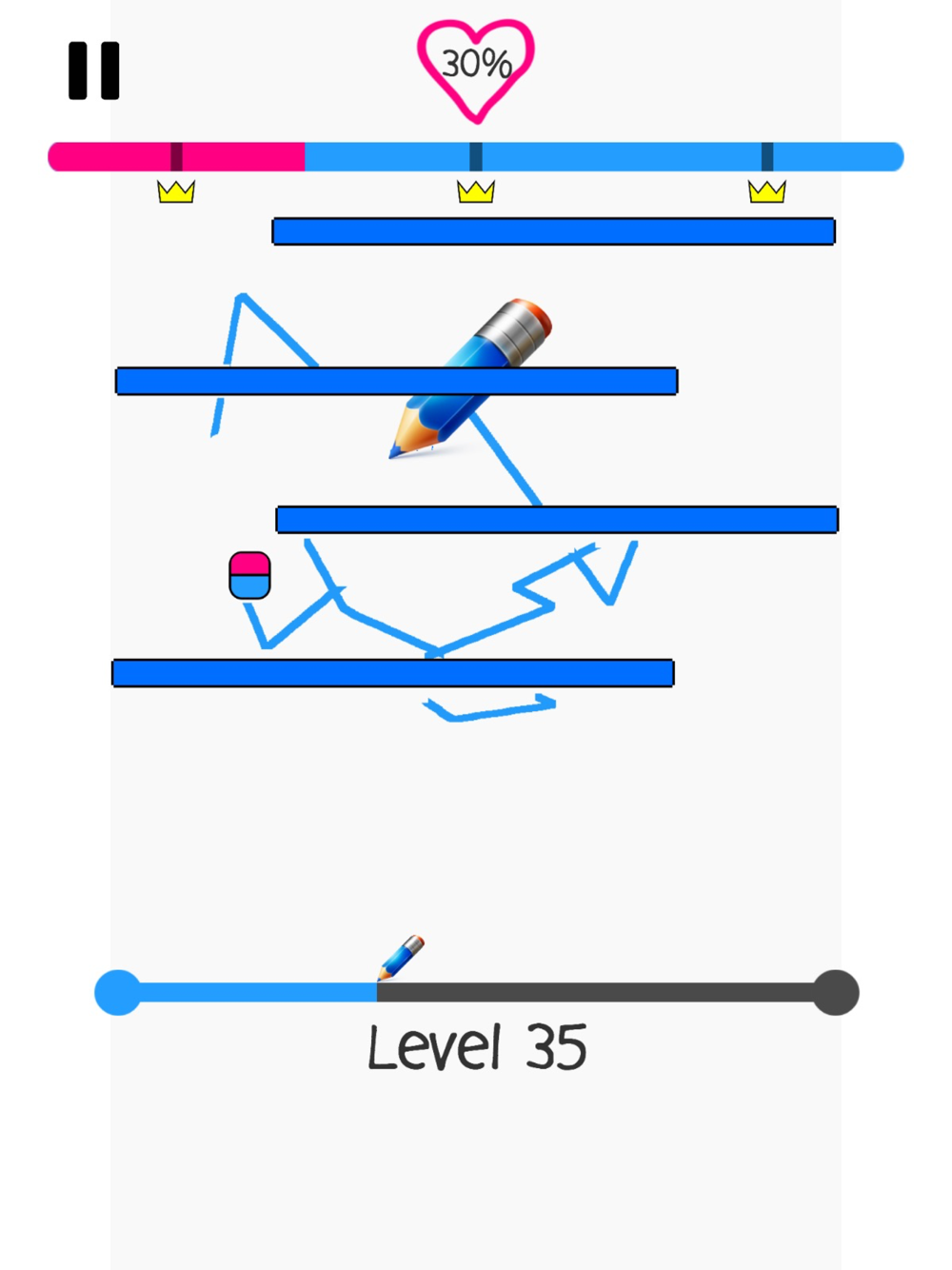 Erease the blue line and go wild by getting 3 crowns in all levels!