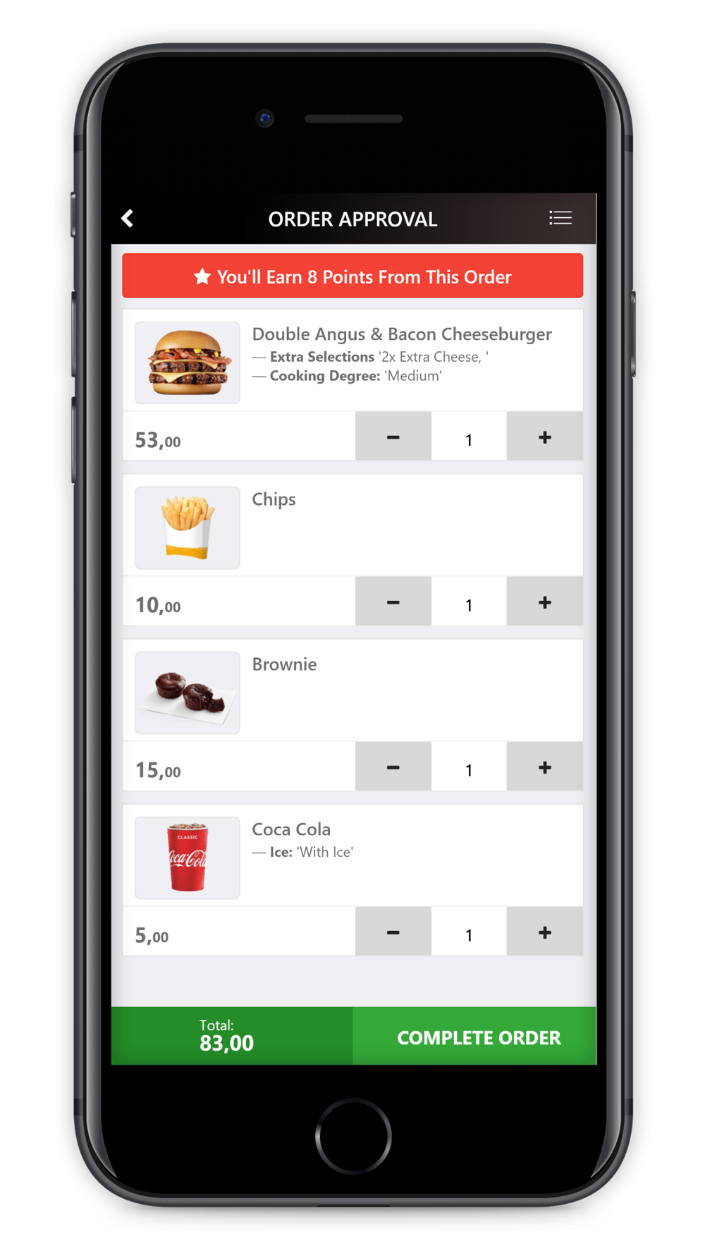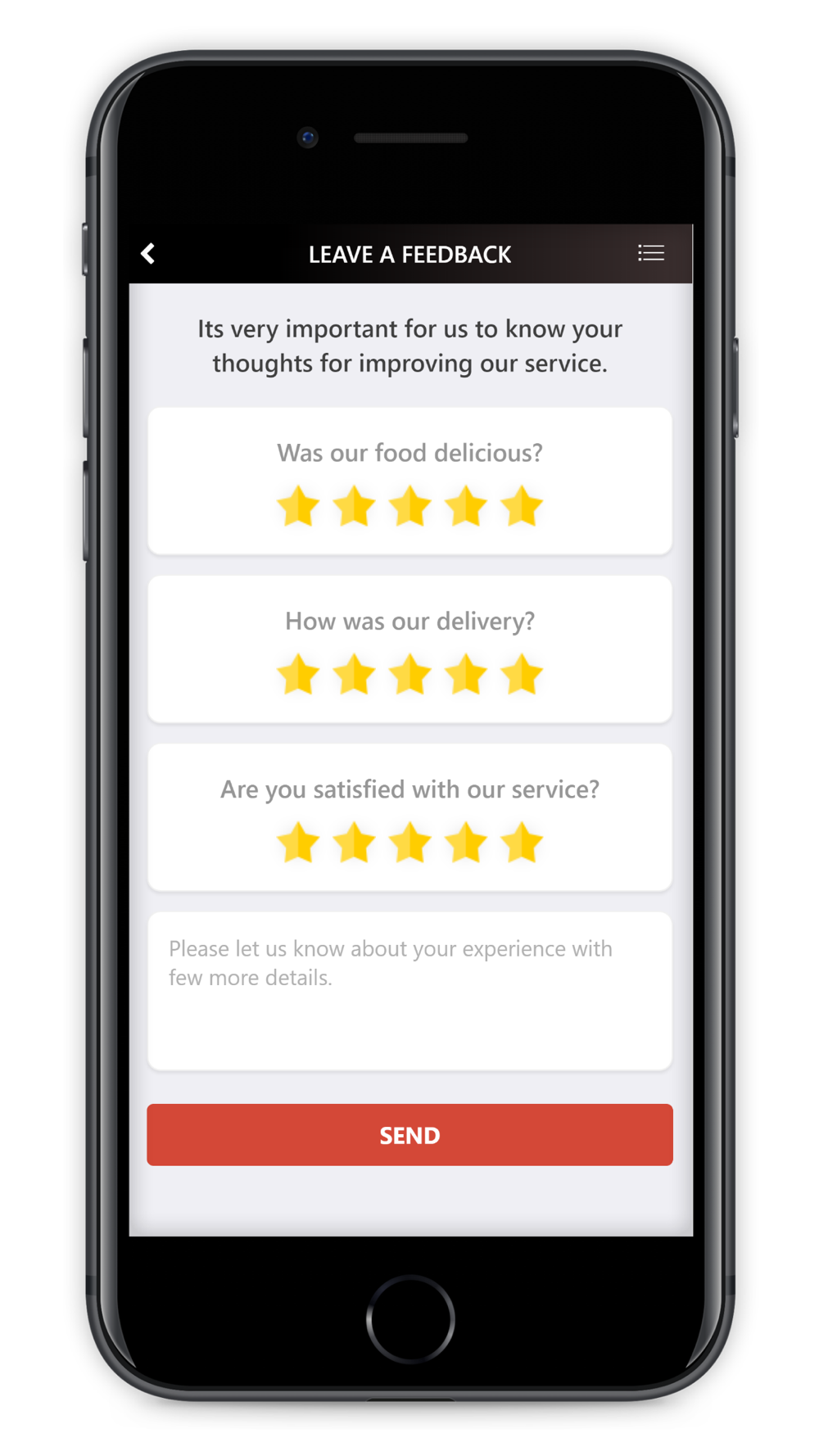 - Rate our foods and services and earn rewards
