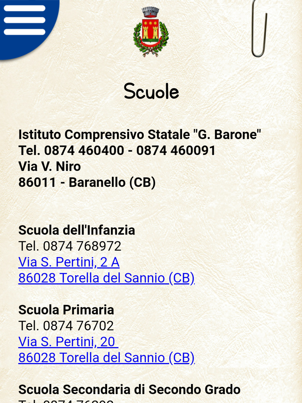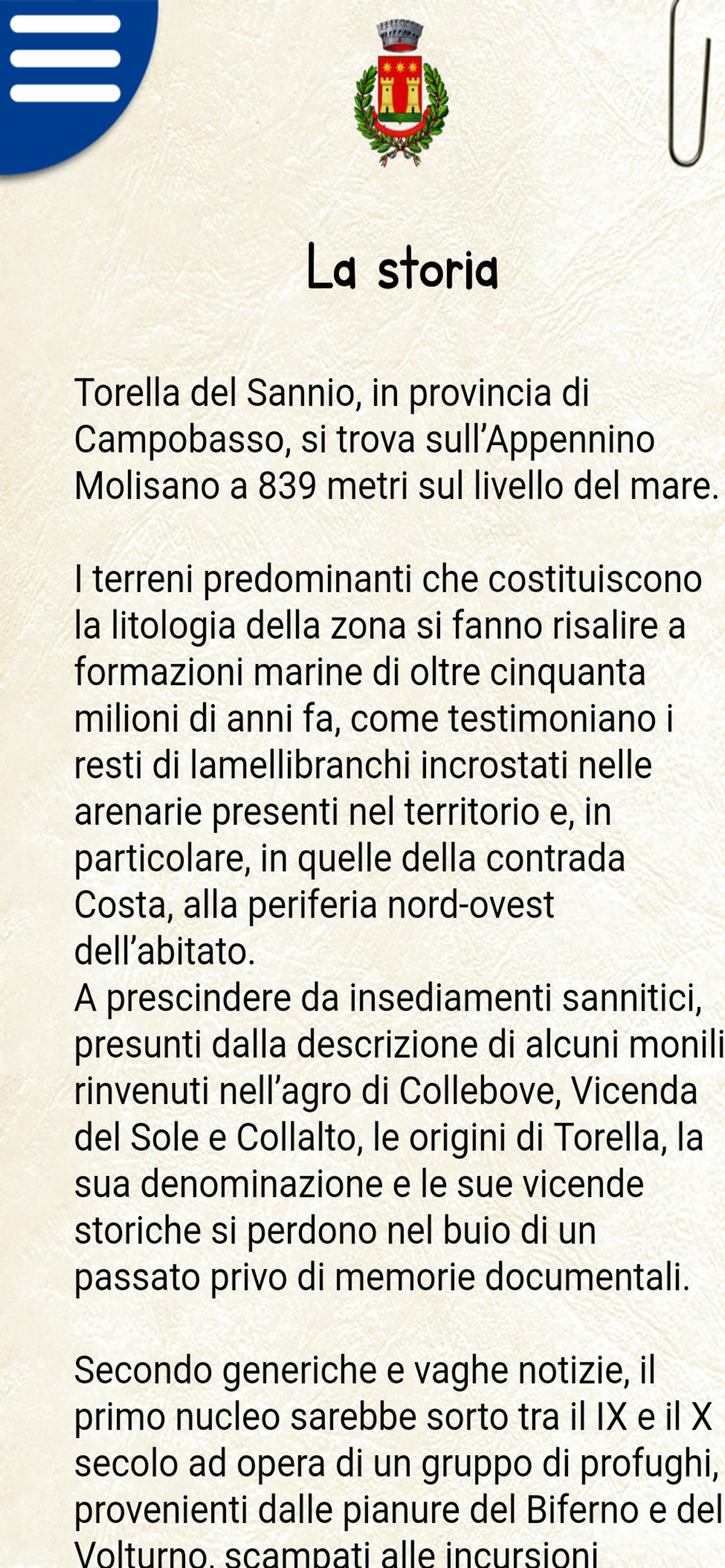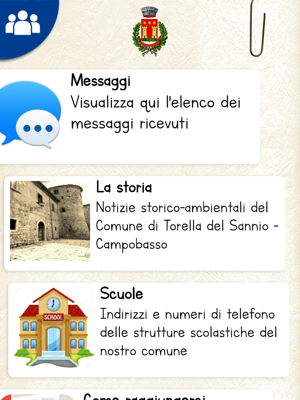 Attraverso l'app ufficiale del Comune di Torella del Sannio potrai essere sempre aggiornato su ciò che accade nel paese, per gli eventi, le sagre, ma potrai anche dialogare con il comune. Infatti attraverso la sezione modulistica è possibile inviare le tue richieste direttamente all'amministrazione comunale. Avrai a disposizione tutti i servizi al cittadino, a portata di cellulare. Ma se sei arrivato da poco nella città di Torella del Sannio, l'app ti indicherà i posti più significativi da visitare. Il virtuoso comune ecofriendly di Torella del Sannio inoltre è molto sensibile al tema della raccolta differenziata e nell'app troverai una sezione apposita per conoscere le regole e i calendari della raccolta, e anche dove ritirare gratuitamente i sacchetti. Se vuoi visitare Torella del Sannio ma non sai come, l'app ti trova anche la strada giusta!