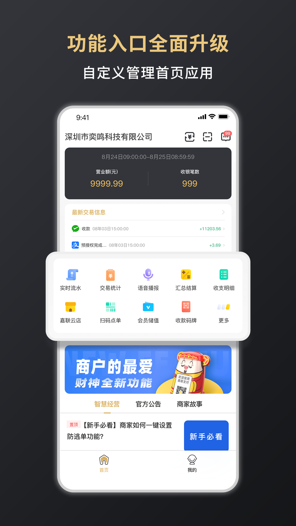 商户APP可为商户提供对账、收款、设备管理等服务。