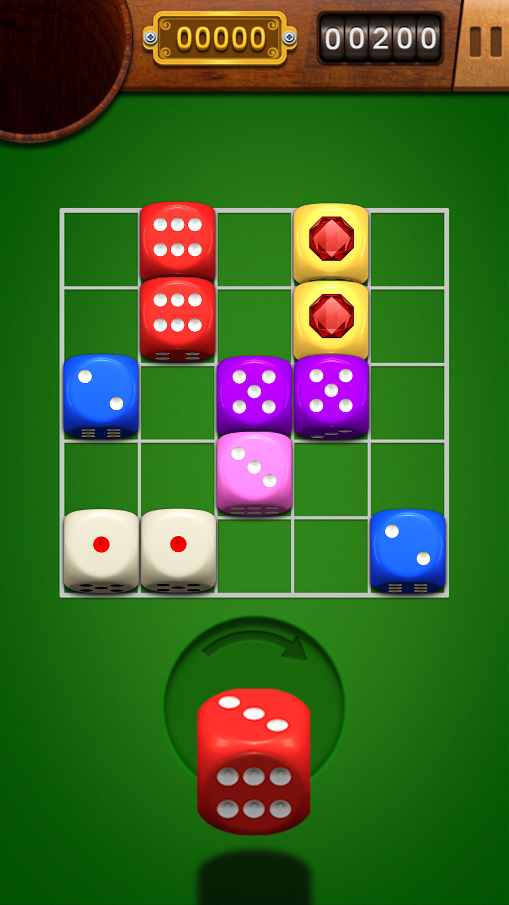 A puzzle game for merging dice to get points. How to play: Put the same number of dices together, and three or more dices in a row, whether horizontal or vertical, will merge together. You can also rotate the dice before placing it. The game ends when you can't put dice. Features: Free games. Infinite time. Easy to operate, difficult to master.