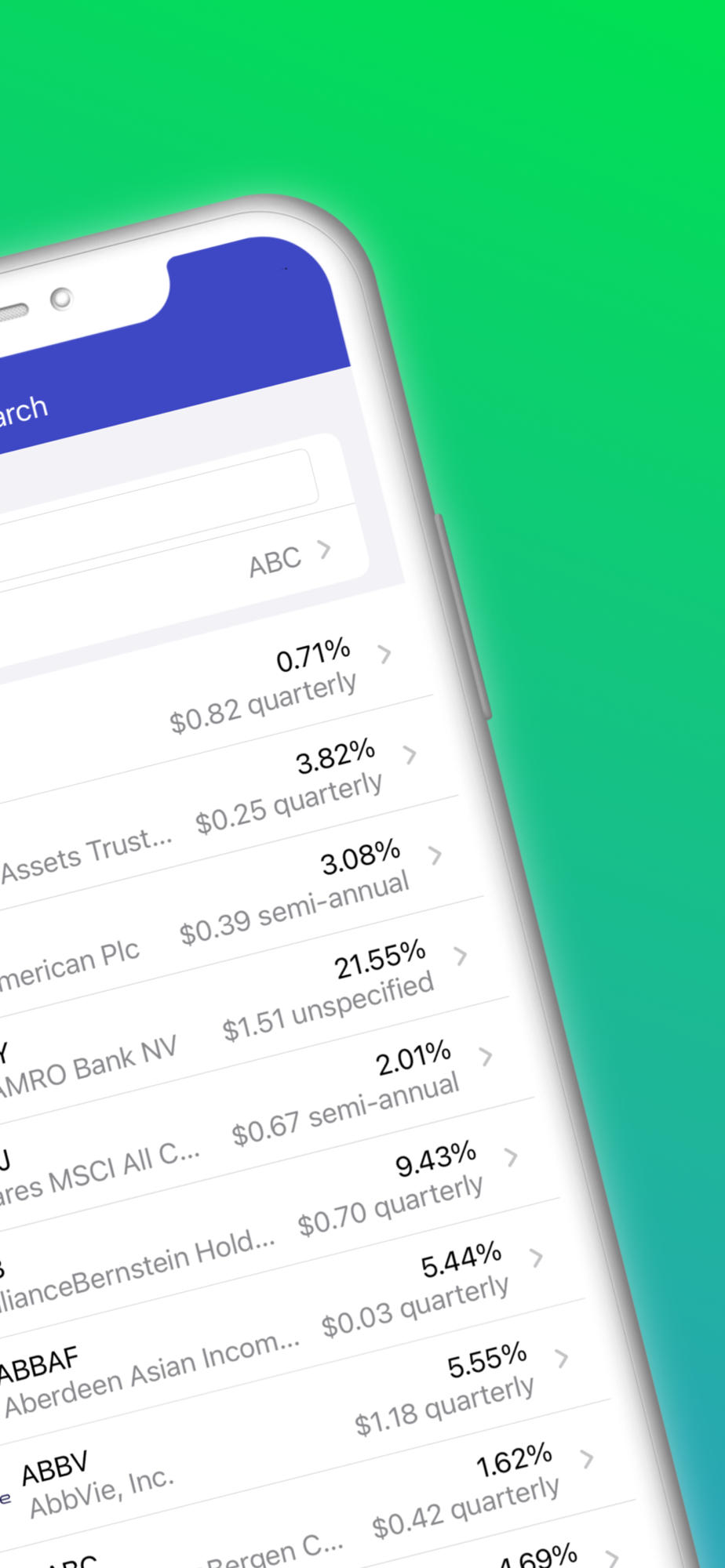 ividX is a stock dividend search engine with information on every stock that pays a dividend. Every trading day, ividX updates the app to display all stocks who's ex-dividend date is the FOLLOWING DAY for $4.99, which will auto-renew each month.