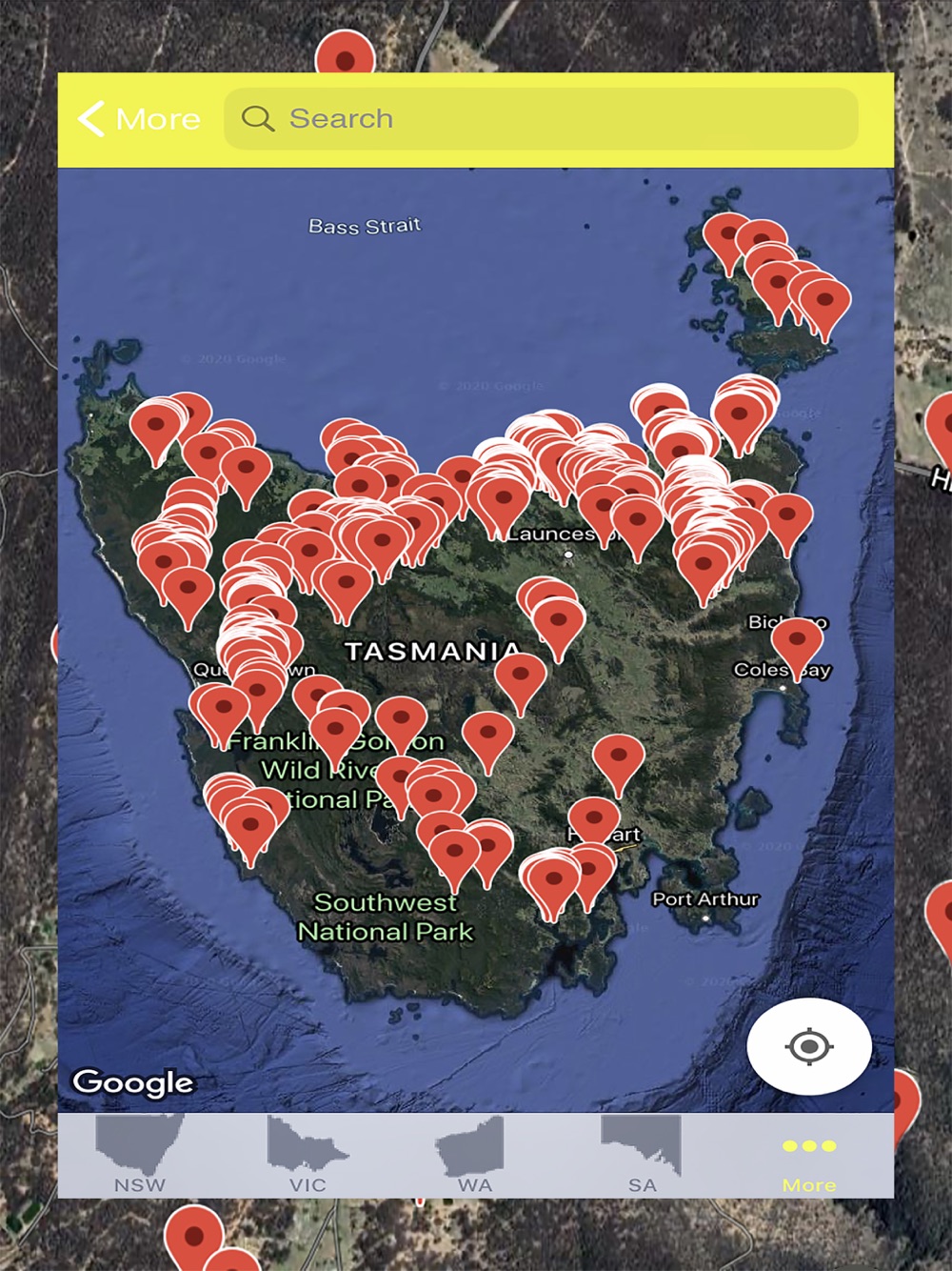 We overlaid this data onto a topographical map that helps in planning your next trip. Because we have used google maps you can easily find nearby camp grounds or caravan parks. All of this is vital in preparing a successful gold fossicking trip.