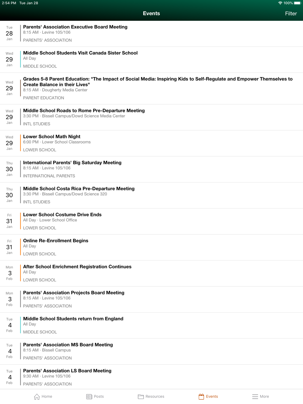 • School announcements and news