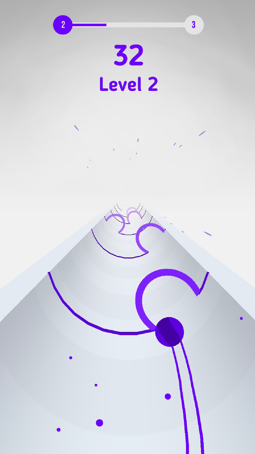 ball is moving forward with snake like slithering trail and u have to move the ball left and right by dragging finger on the screen.