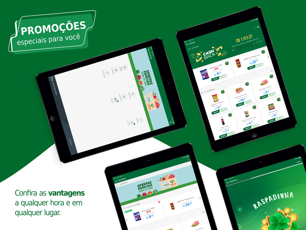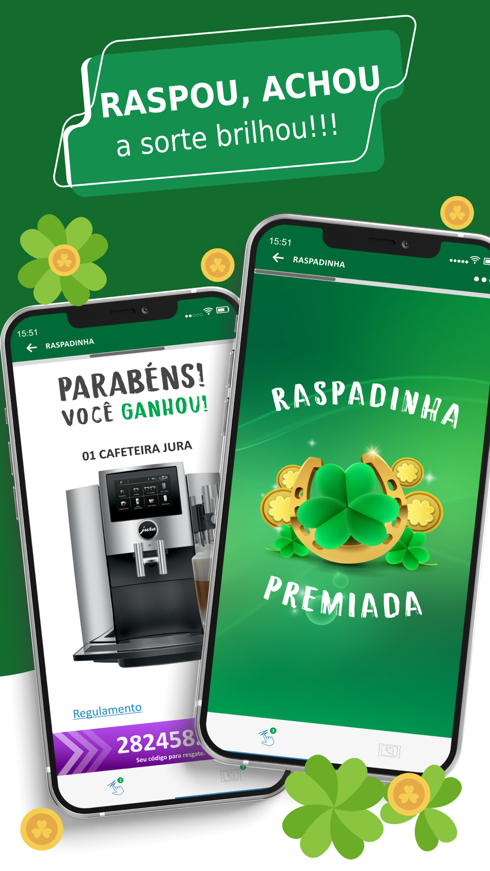 Suas compras identificadas no caixa podem gerar raspadinhas digitais e pelo aplicativo você pode tentar a sorte, raspando e concorrendo a diversos prêmios. "Raspou, achou, GANHOUU!"