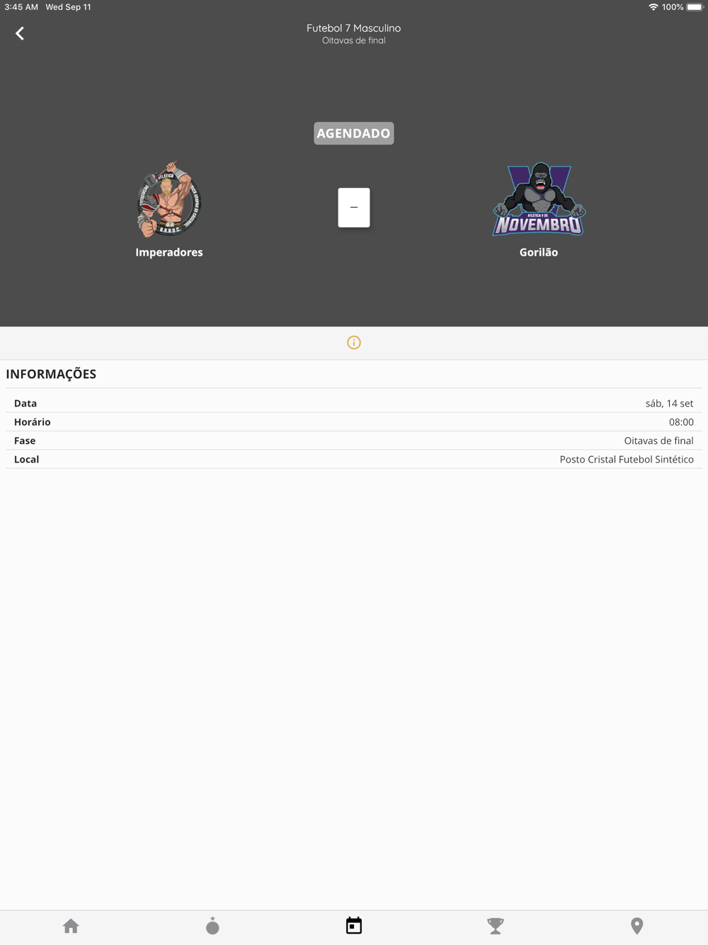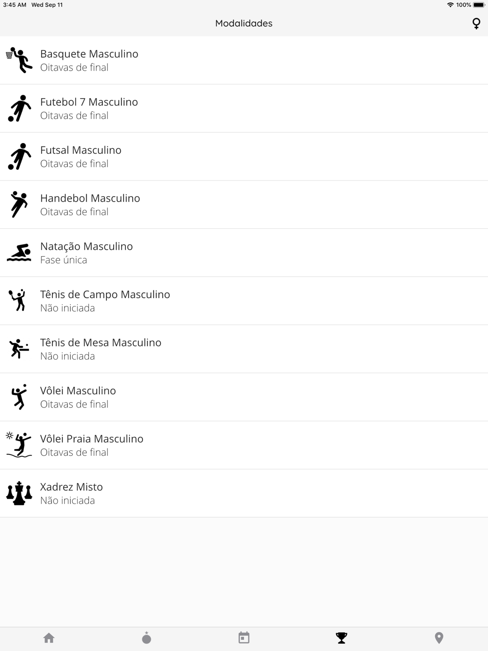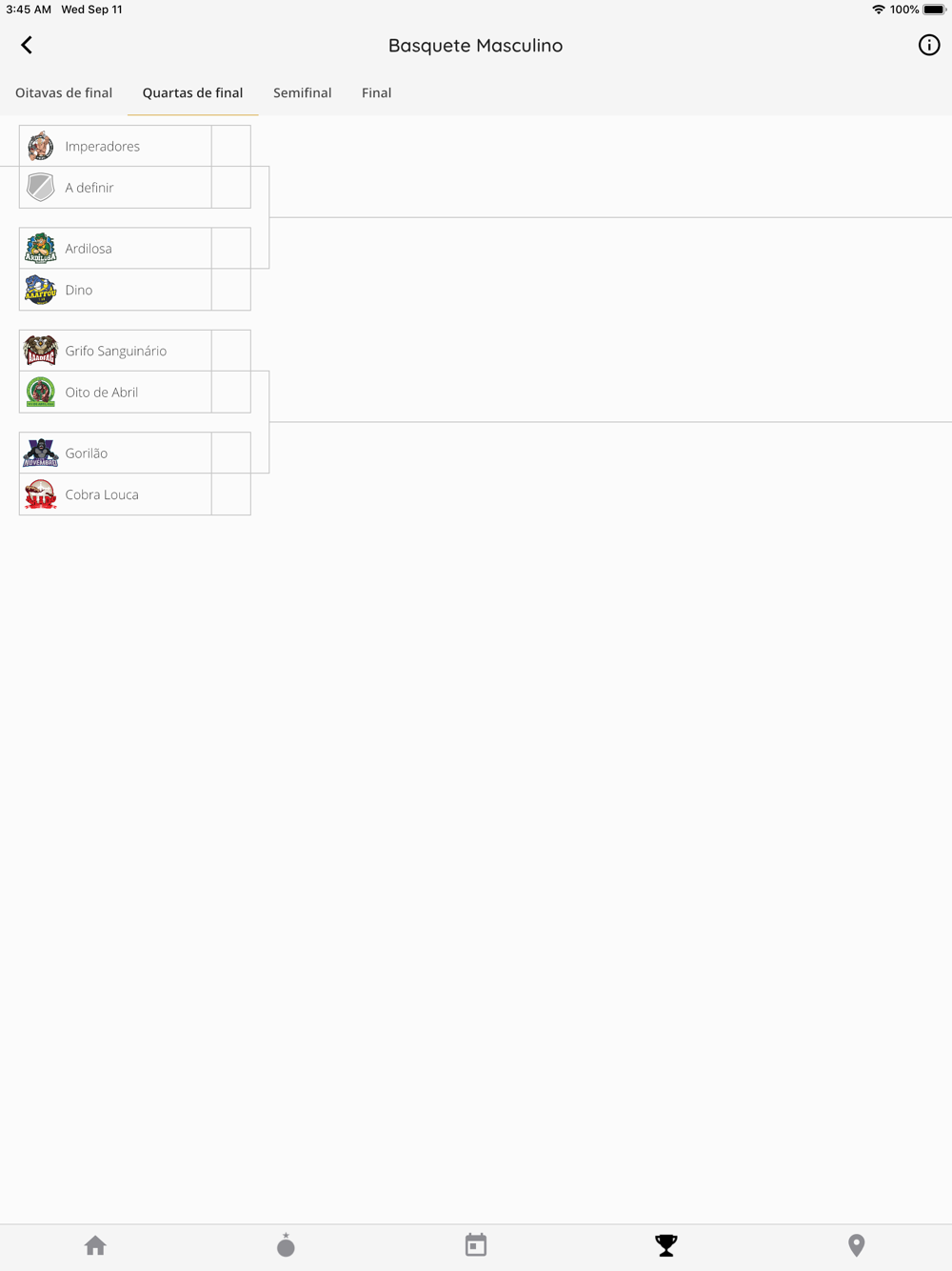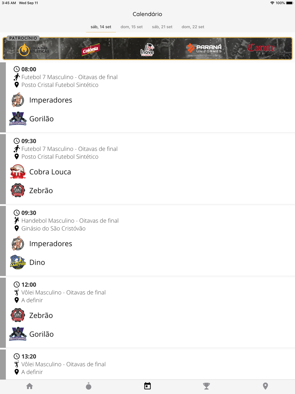 - Ver o calendário de jogos da competição, chaveamento das modalidades e classificações