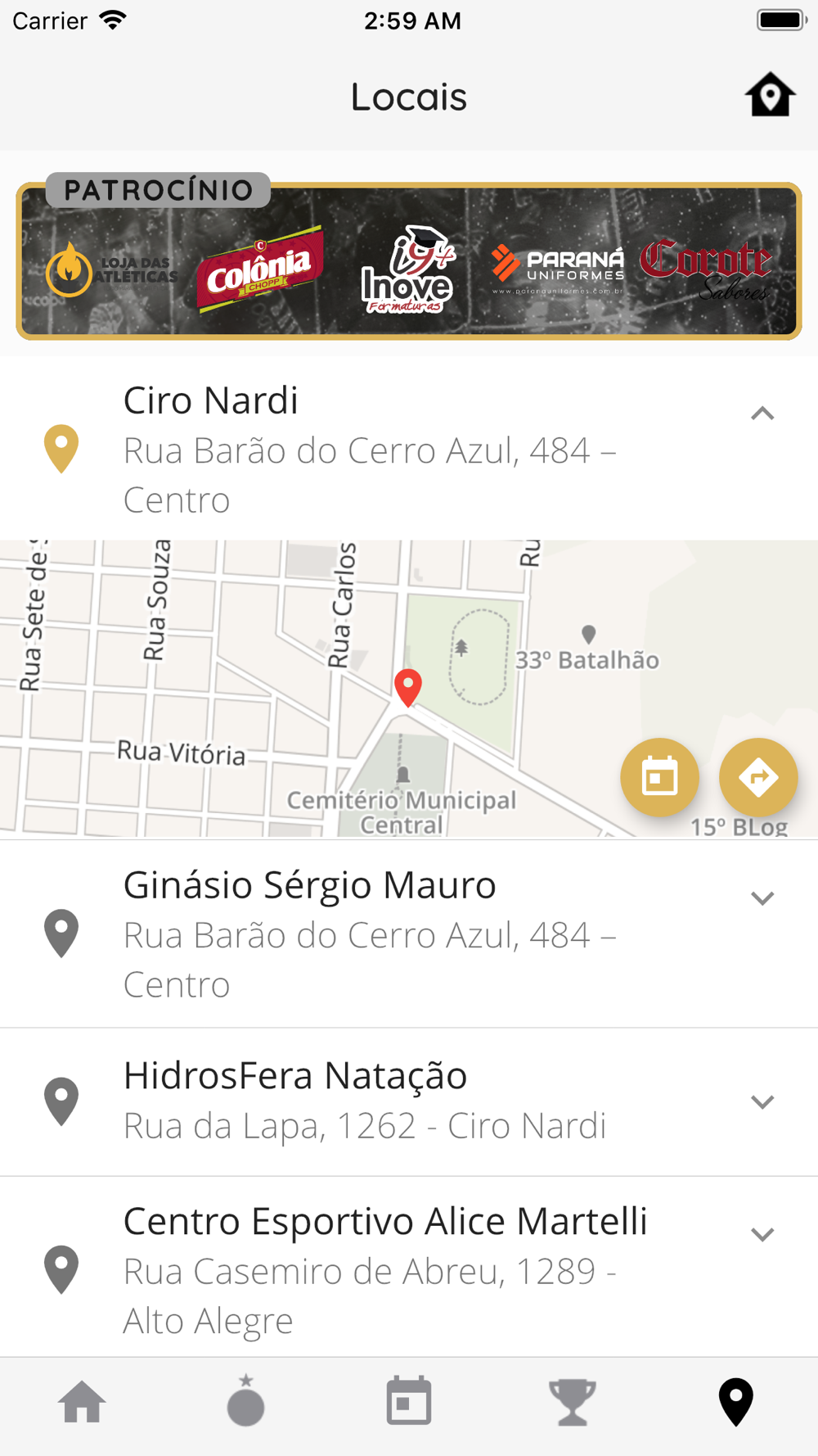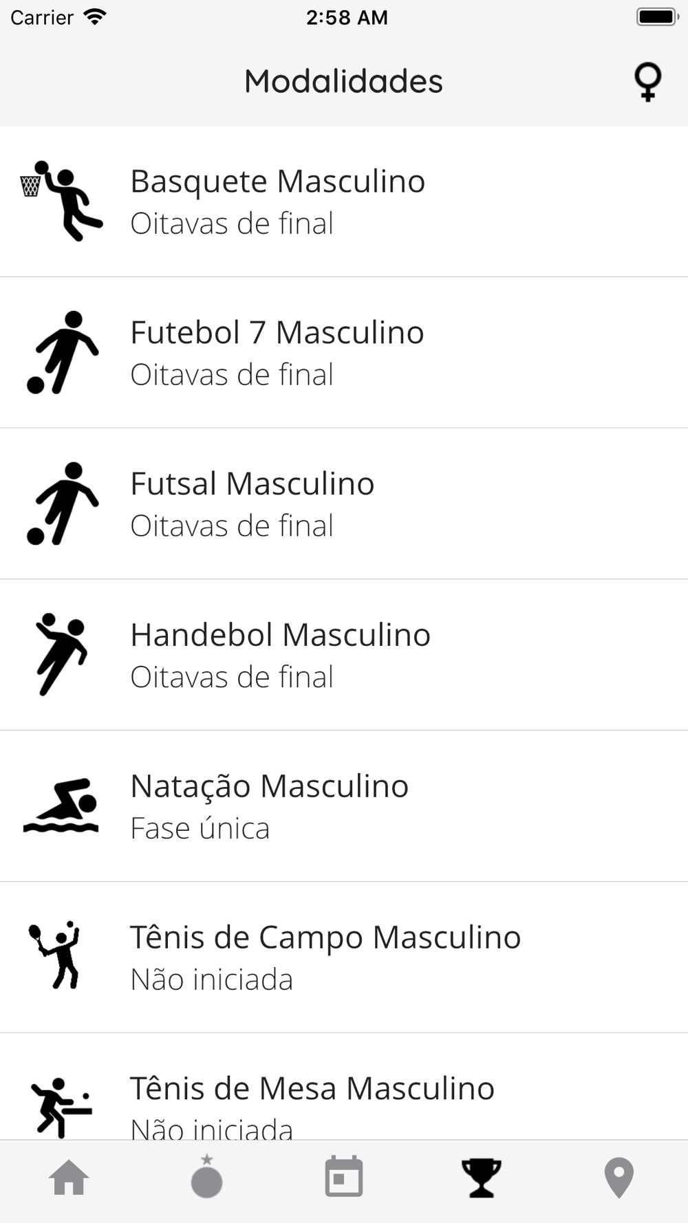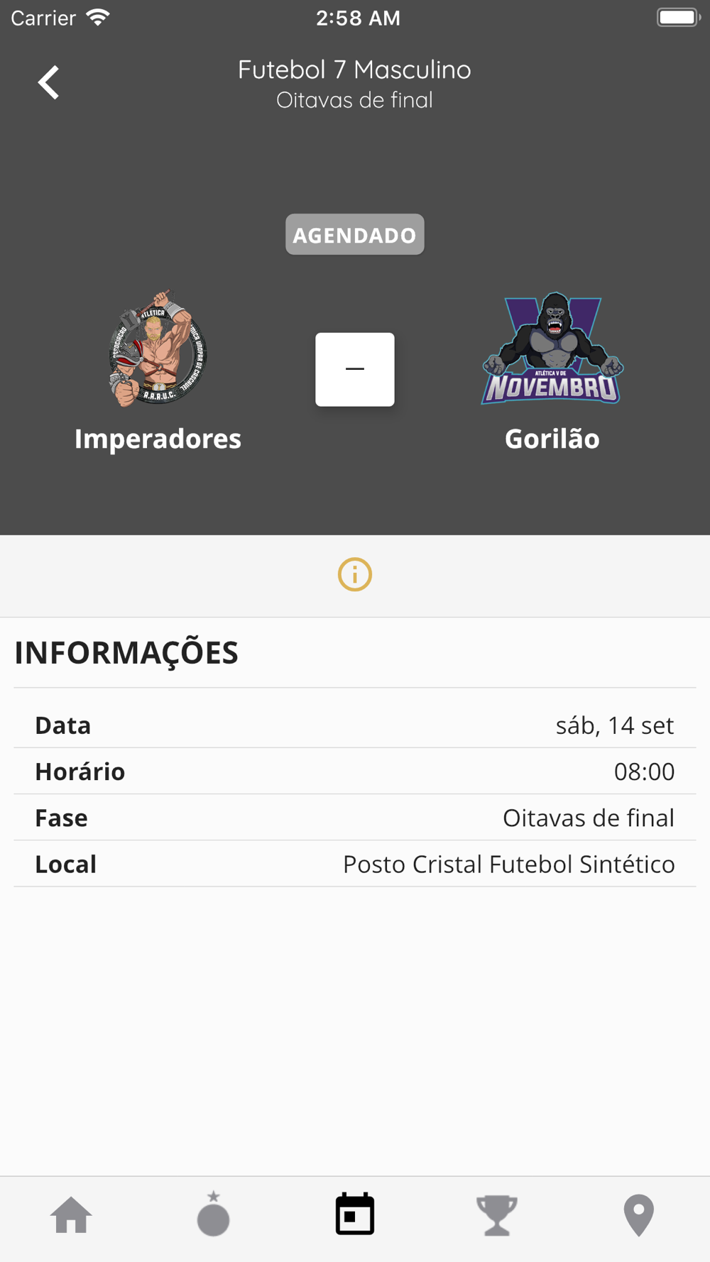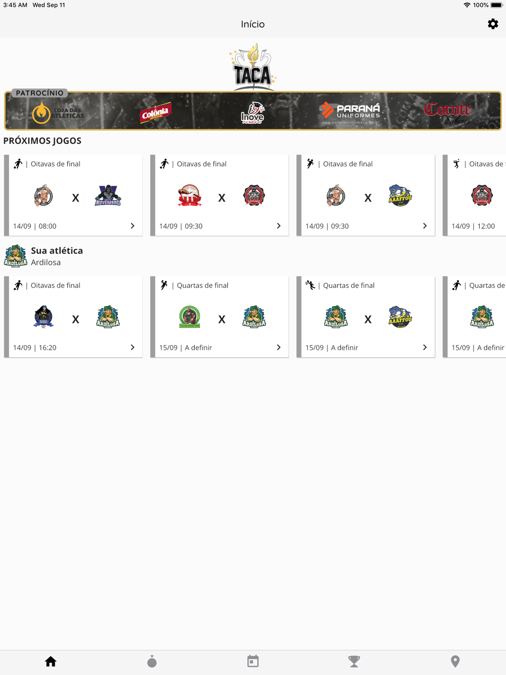 - Ver o calendário de jogos da competição, chaveamento das modalidades e classificações