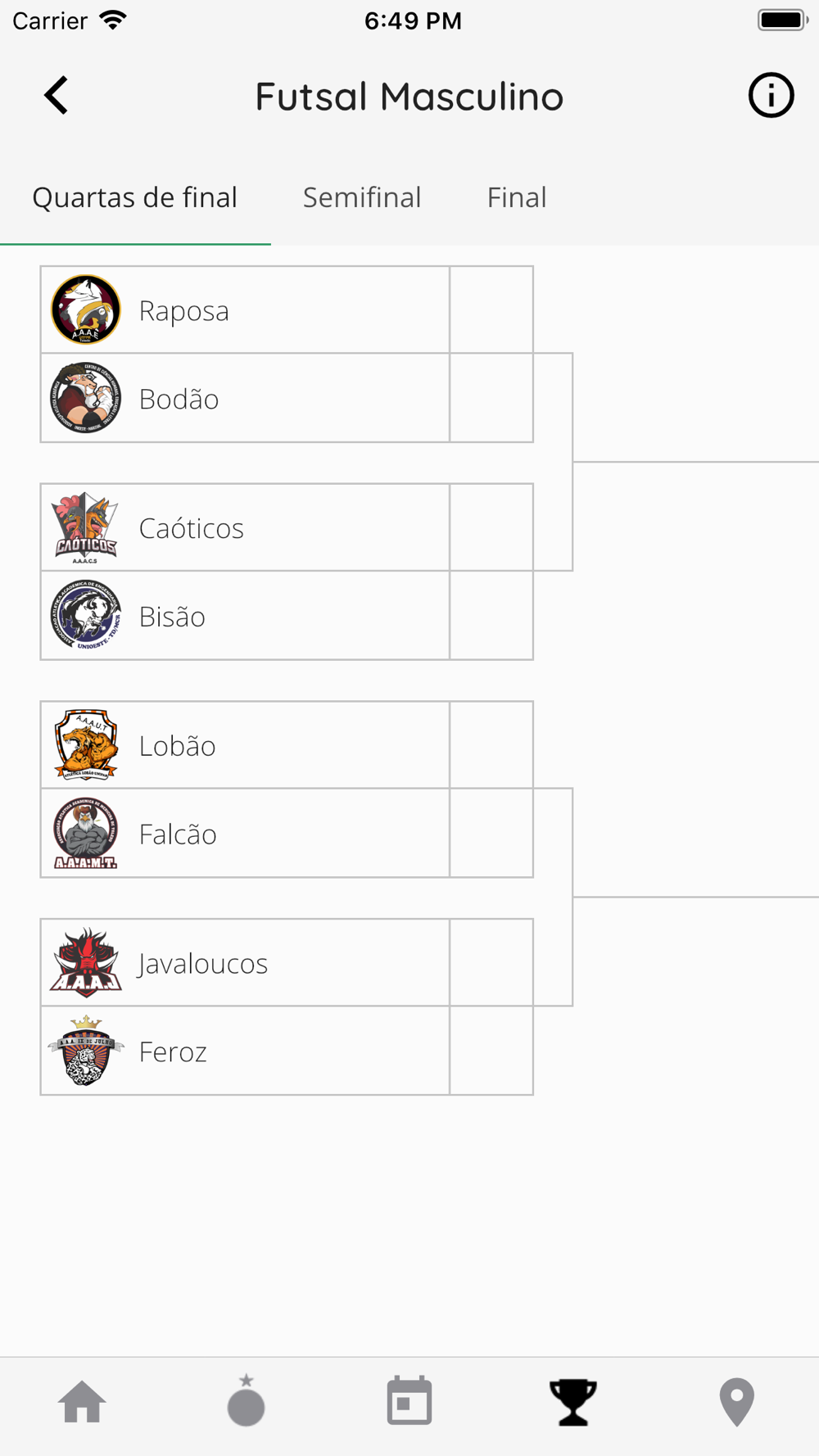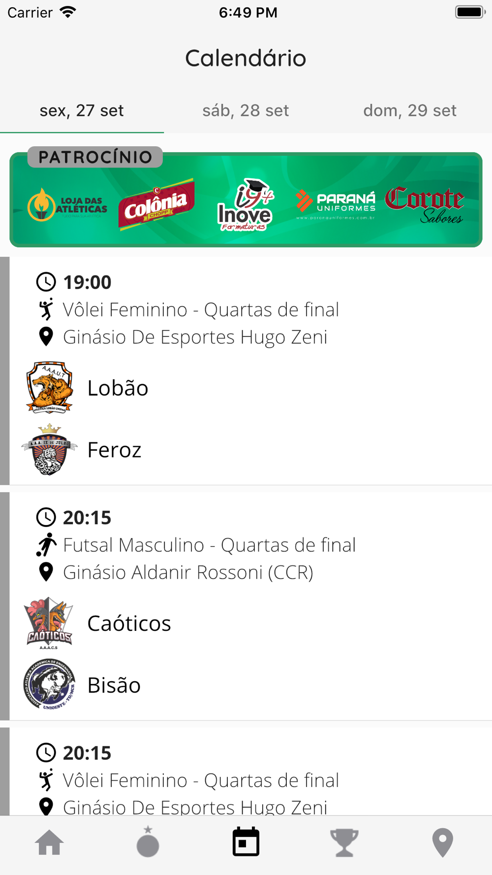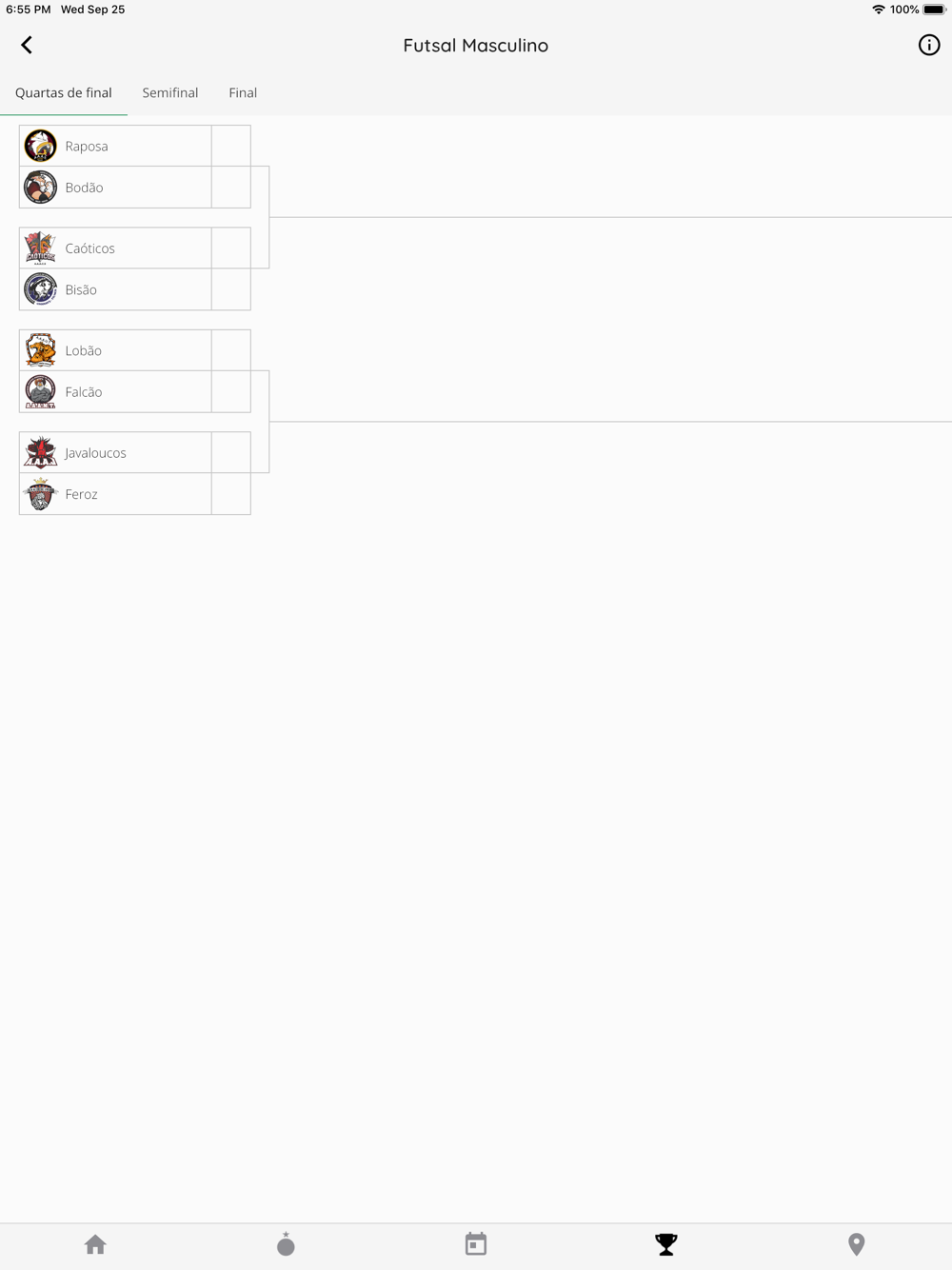 - Ver o calendário de jogos da competição, chaveamento das modalidades e classificações