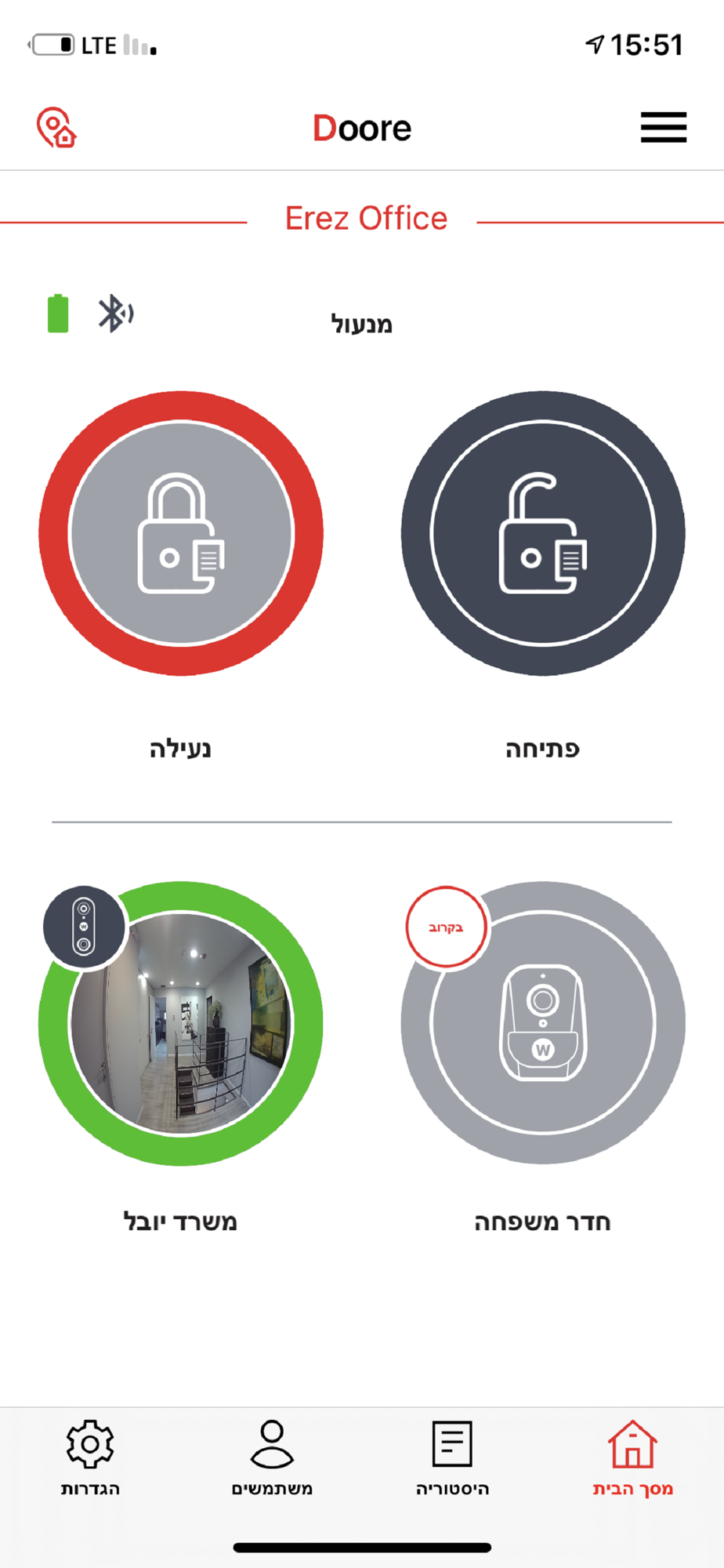 - יחד עם המנעול החכם DOORe תוכל לפתוח את הדלת ממסך הצפייה של הפעמון.