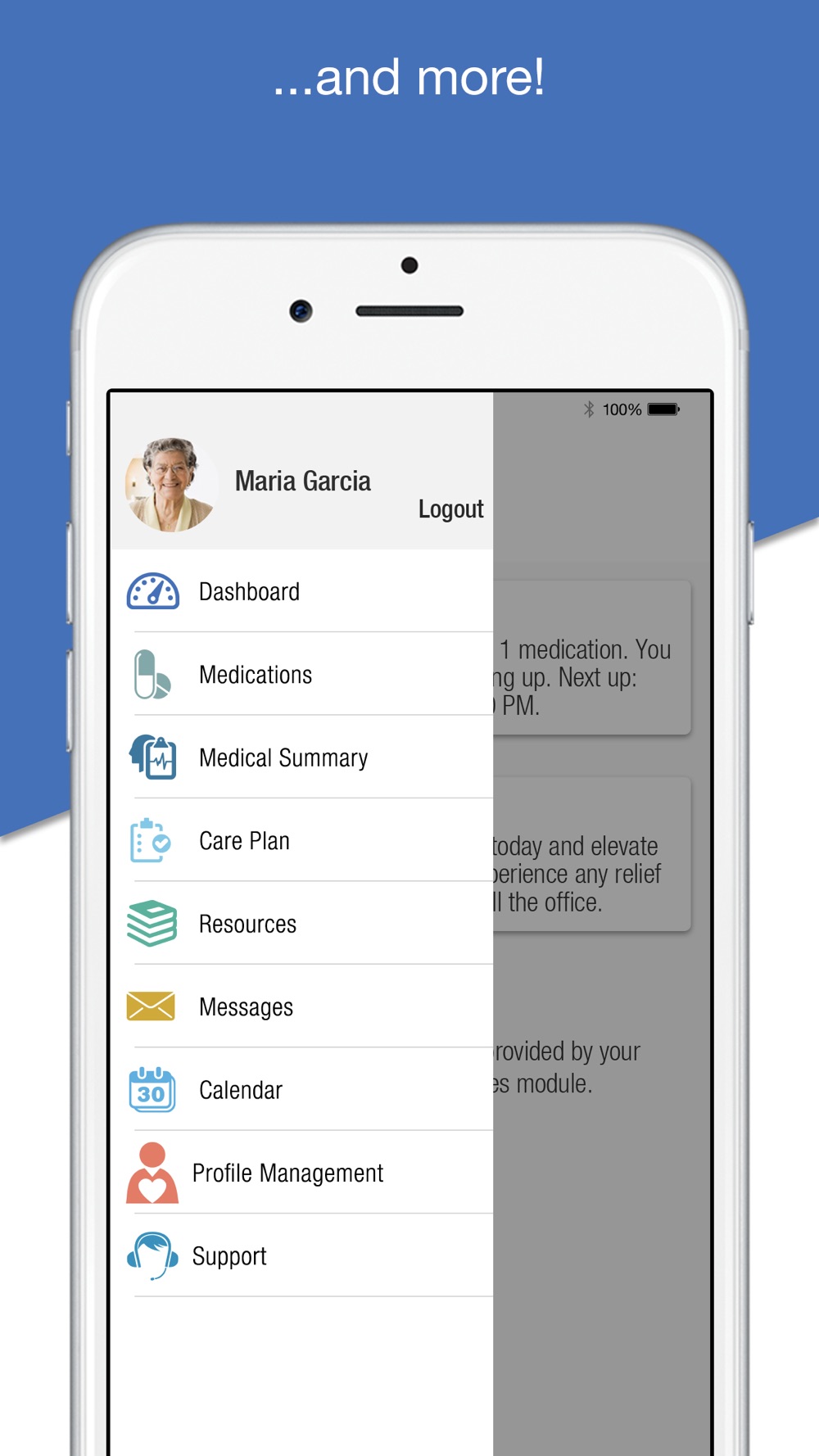receive reminders, send secure messages to their healthcare professionals, access valuable educational resources and much more