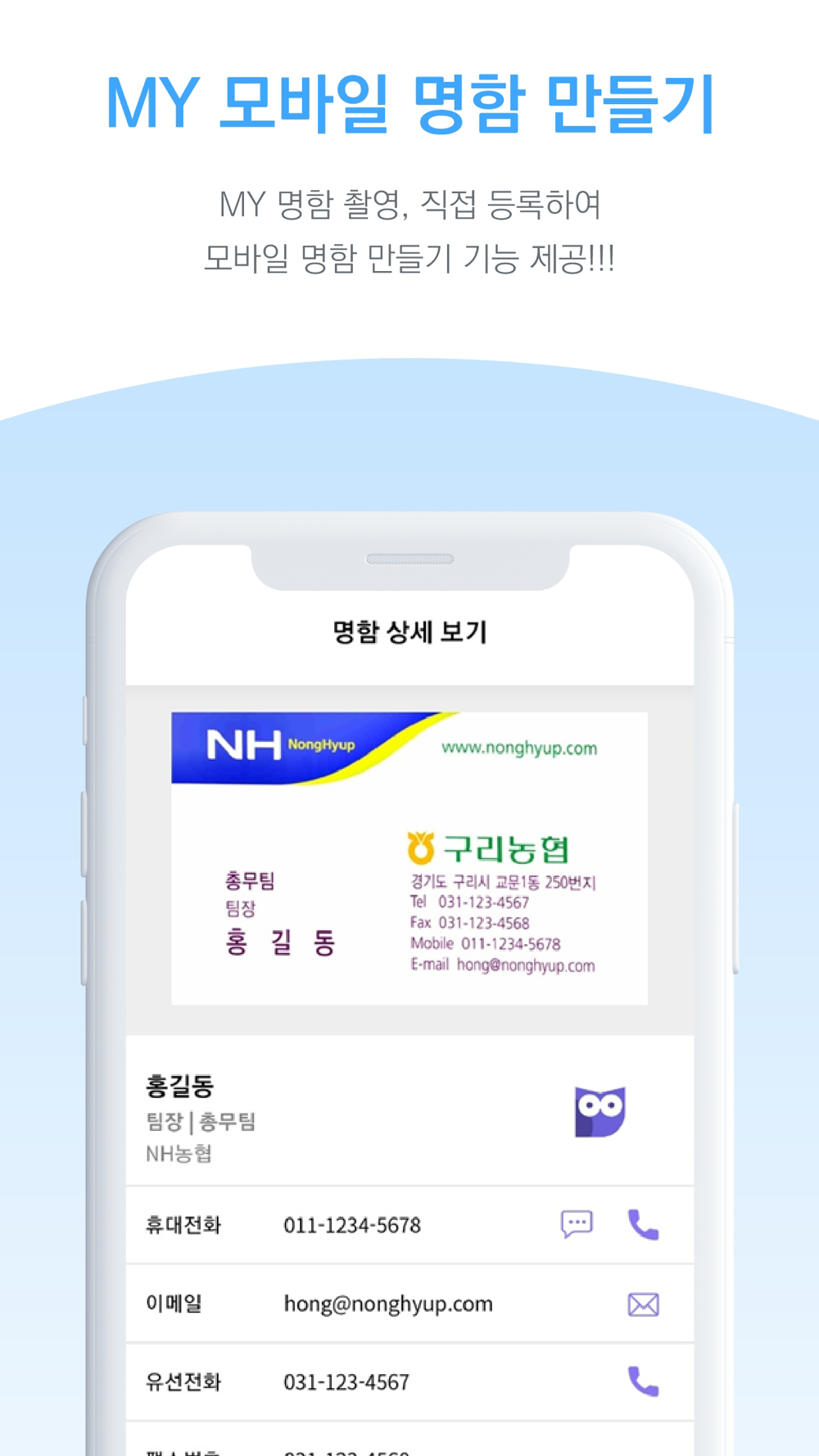 MY 명함첩에서 명함 정보를 수정하면 휴대폰 주소록에도 알아서 수정/저장 됩니다.