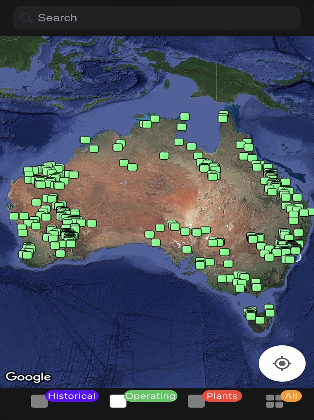 Mine Maps Australia Displays all current operating mines and processing plants in a easy to use application.