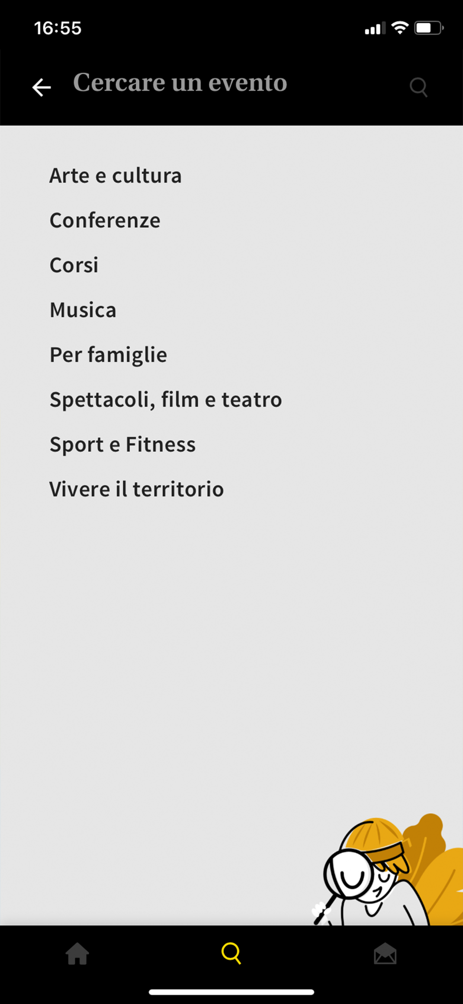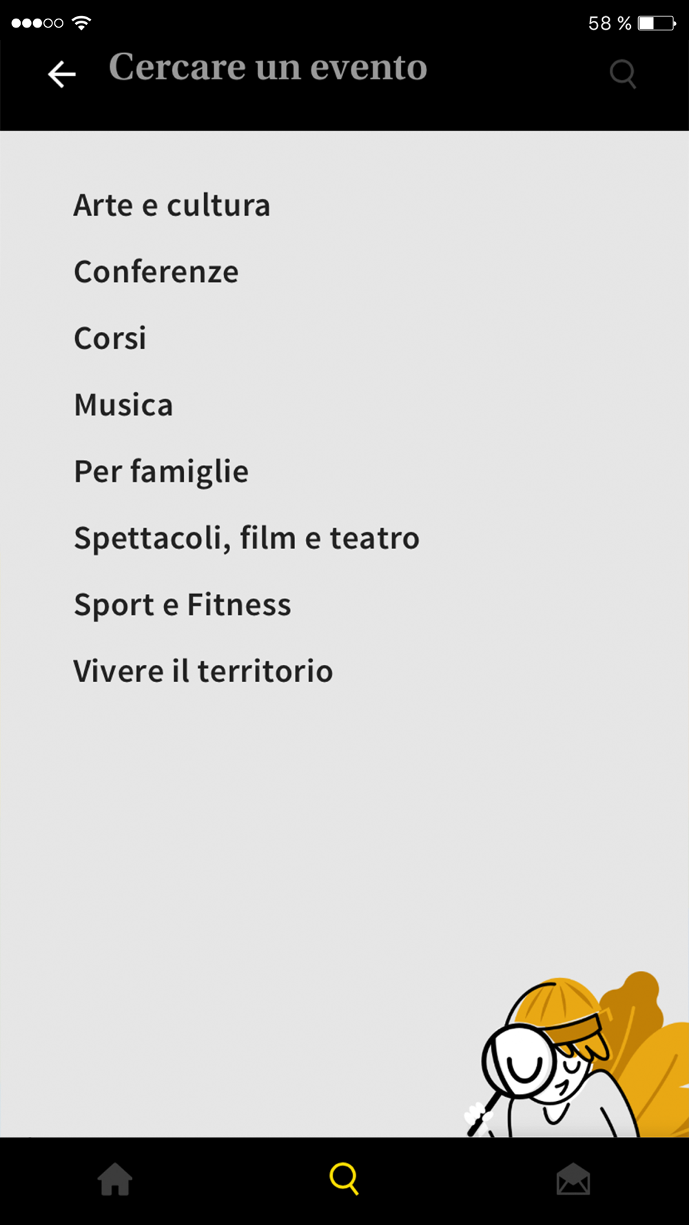 - Selezionare le proposte in base ai tuoi interessi grazie alla suddivisione in categorie: