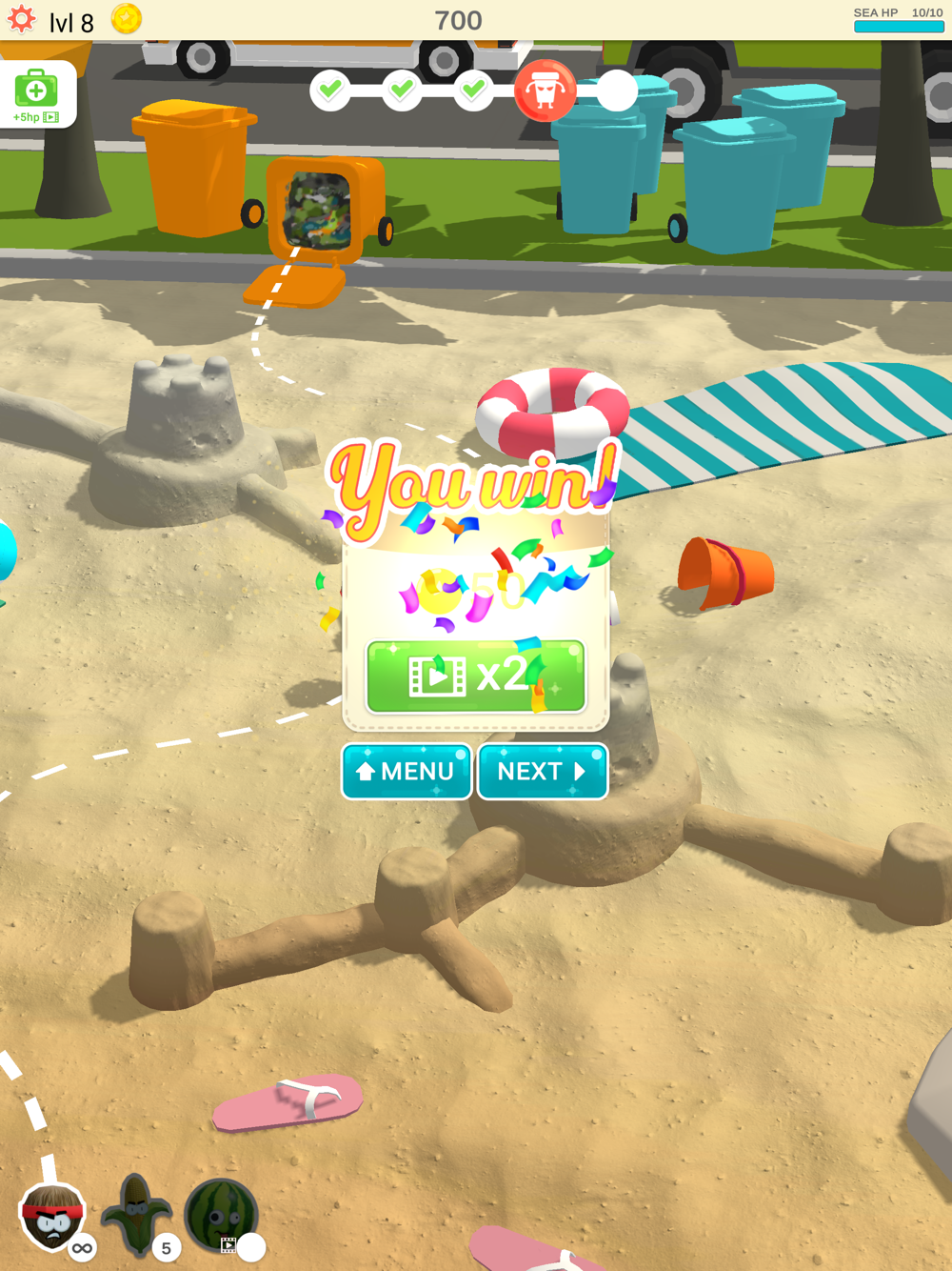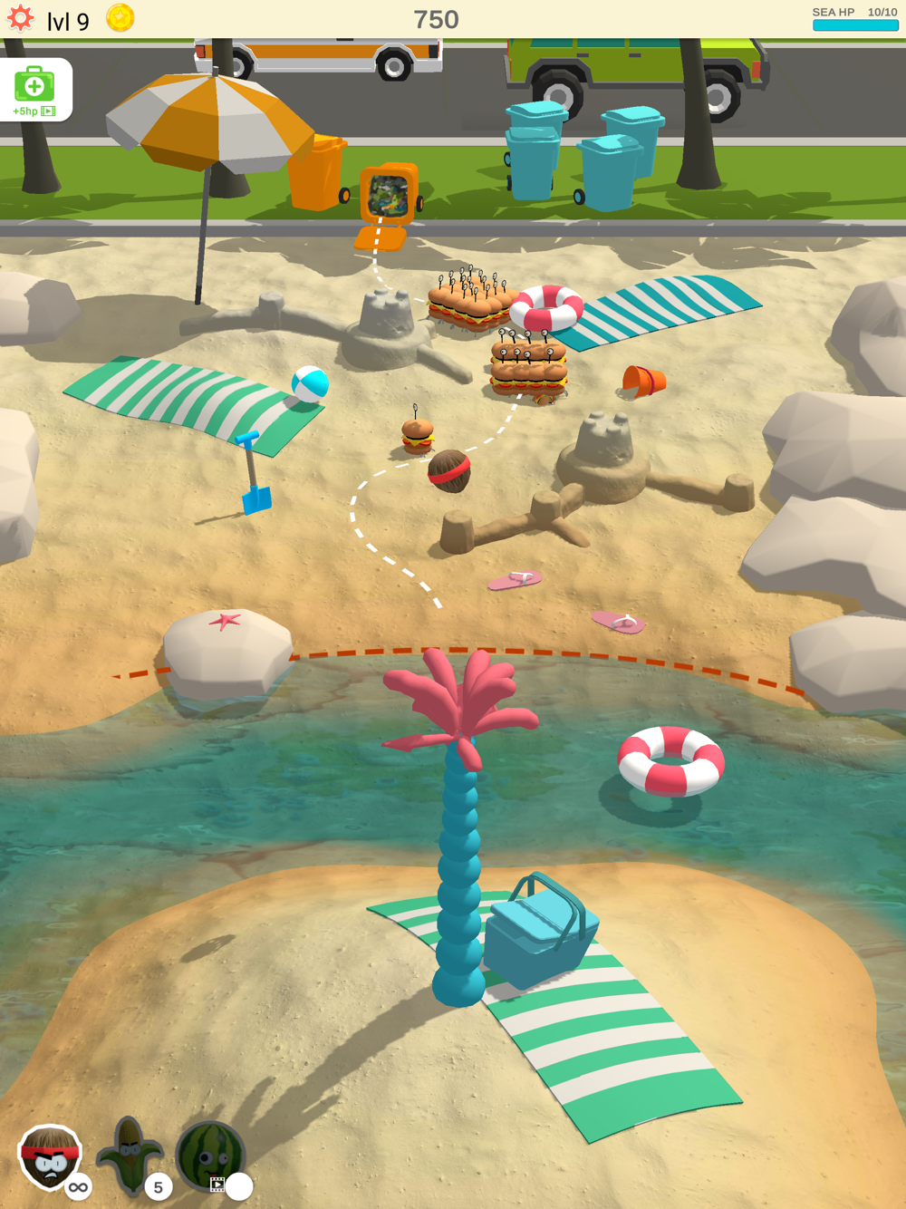 Incredibly simple controls are the main feature of the game. But not everything is so simple, you will need to find a defense strategy, be prudent in order not to let fastfood reach the ocean. A catapult will help you in this, like a palm tree, which you will need to improve in order to save the world. Also you need to improve your sniper skills and the game doesn't allow misses. Predict your shot two steps ahead, fastfood can be unpredictable, they can rush with high speeds to destroy you and your base.