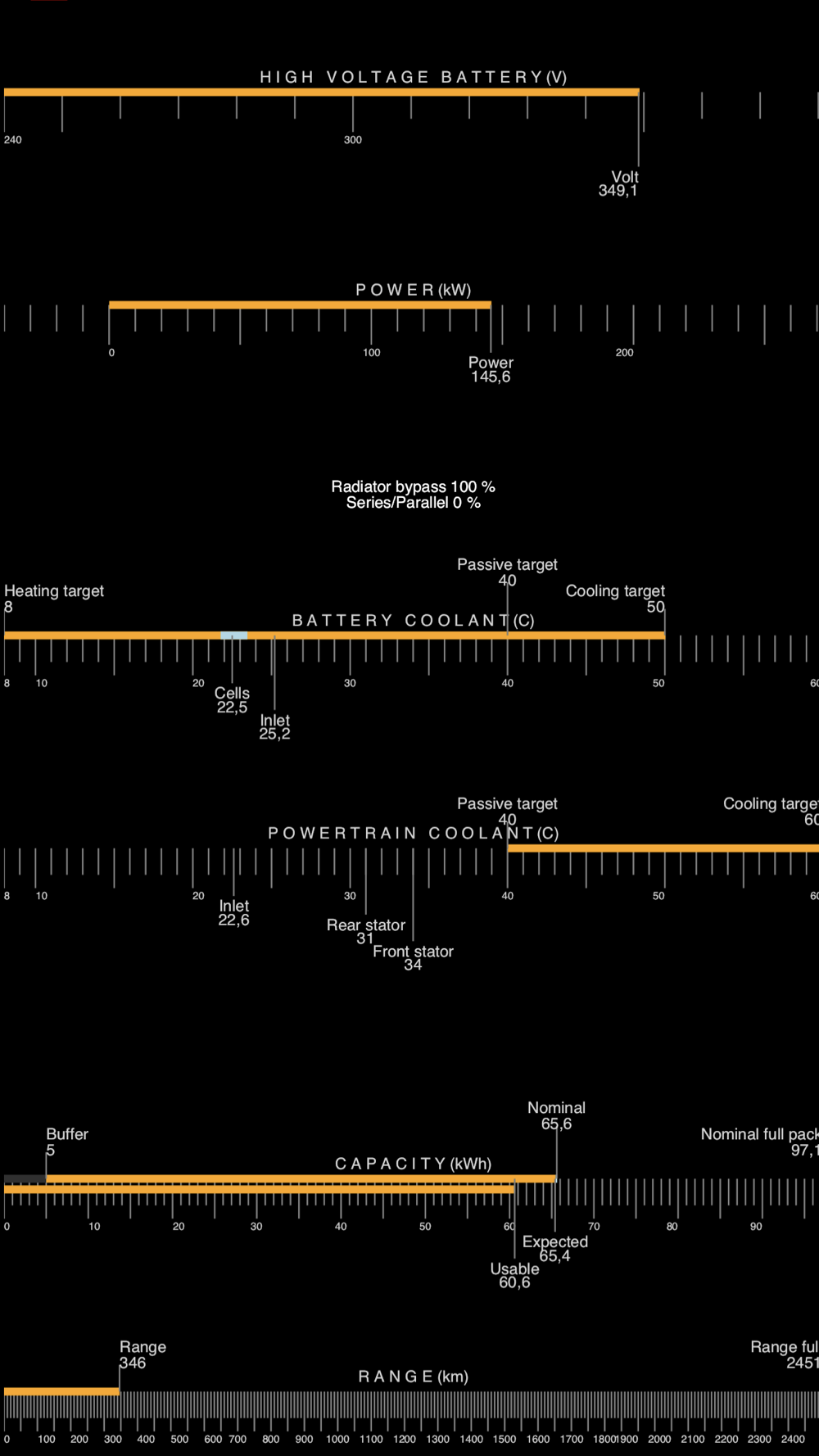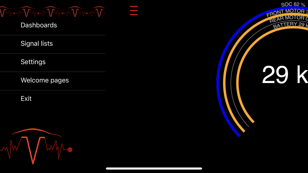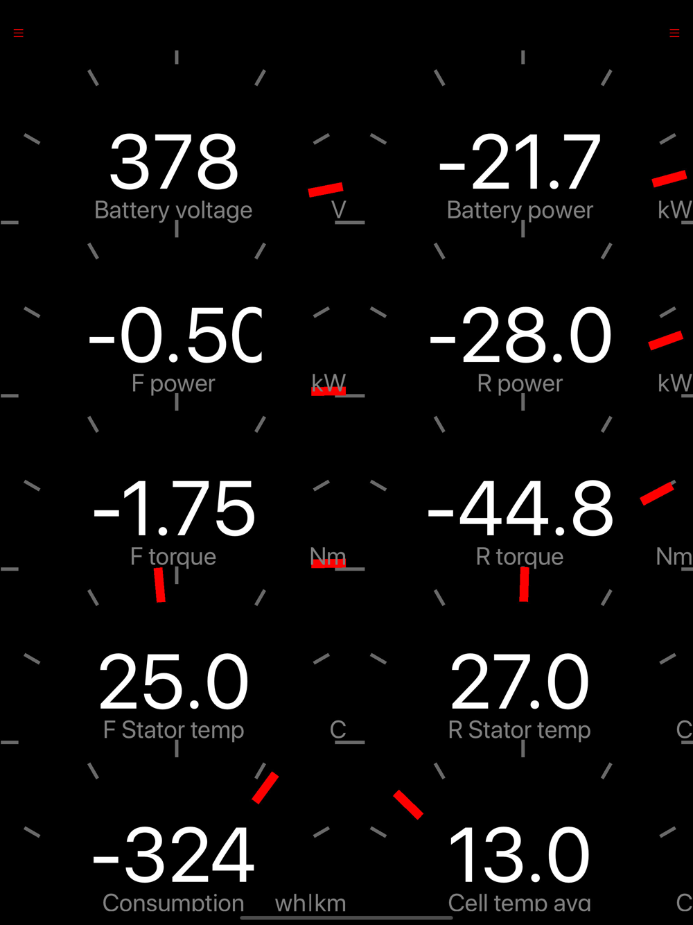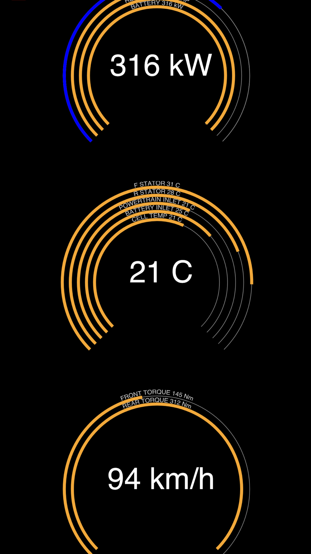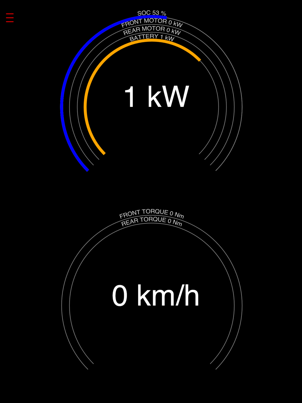 This app connects to your car's CAN-bus, and can read lots of interesting and entertaining information such as temperatures, motor torque, battery power and capacity, and much much more.