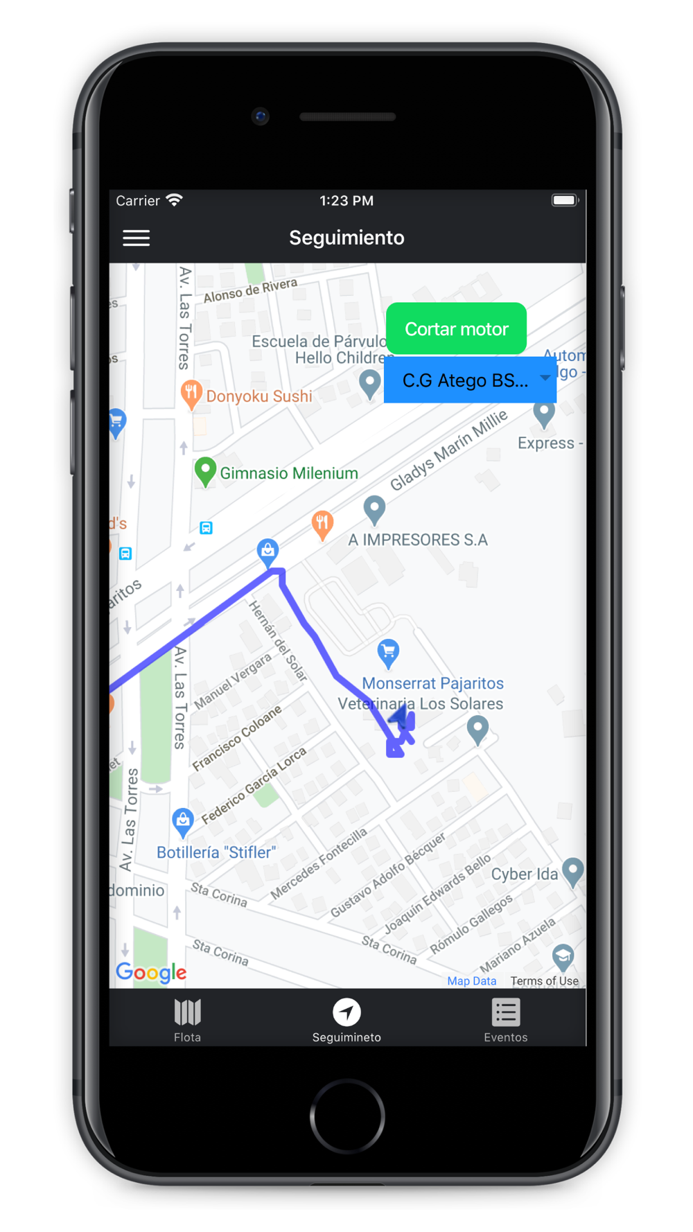 - Controla la posición de todos tus vehículos desde tu celular.
