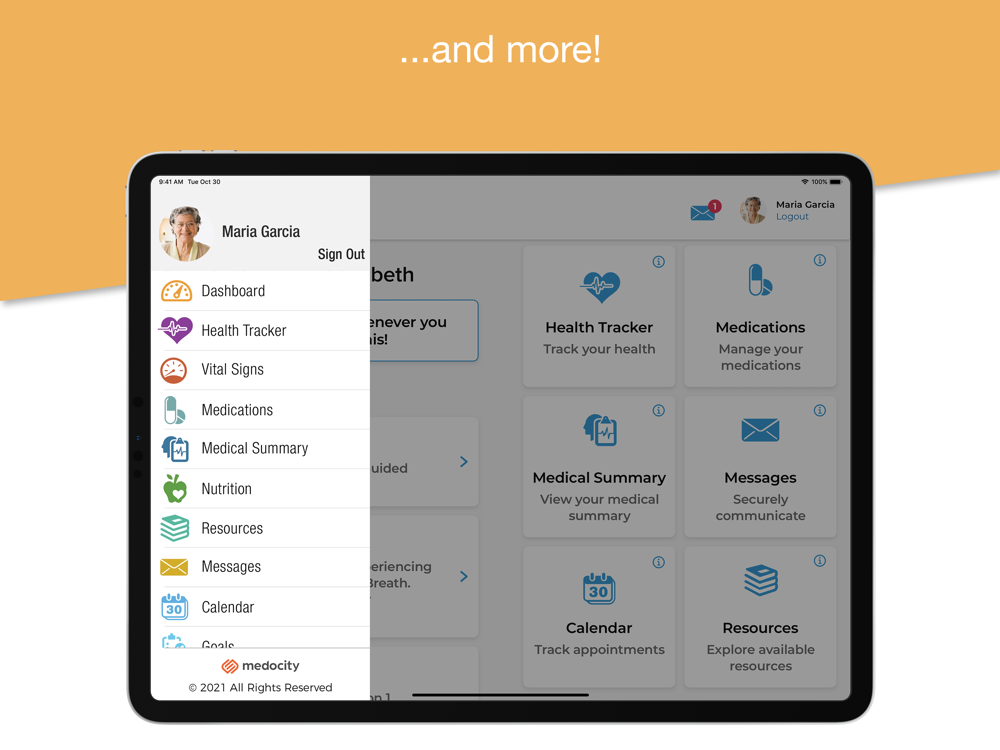 Medocity Patient Connect was developed for patients to virtually connect with their care professionals between visits. Patient experience is personalized for their specific needs and health condition. Patients can send secure messages, track medication and get reminders, report symptoms, access valuable educational resources and much more. And, it’s available on smart phone, tablet and PC.