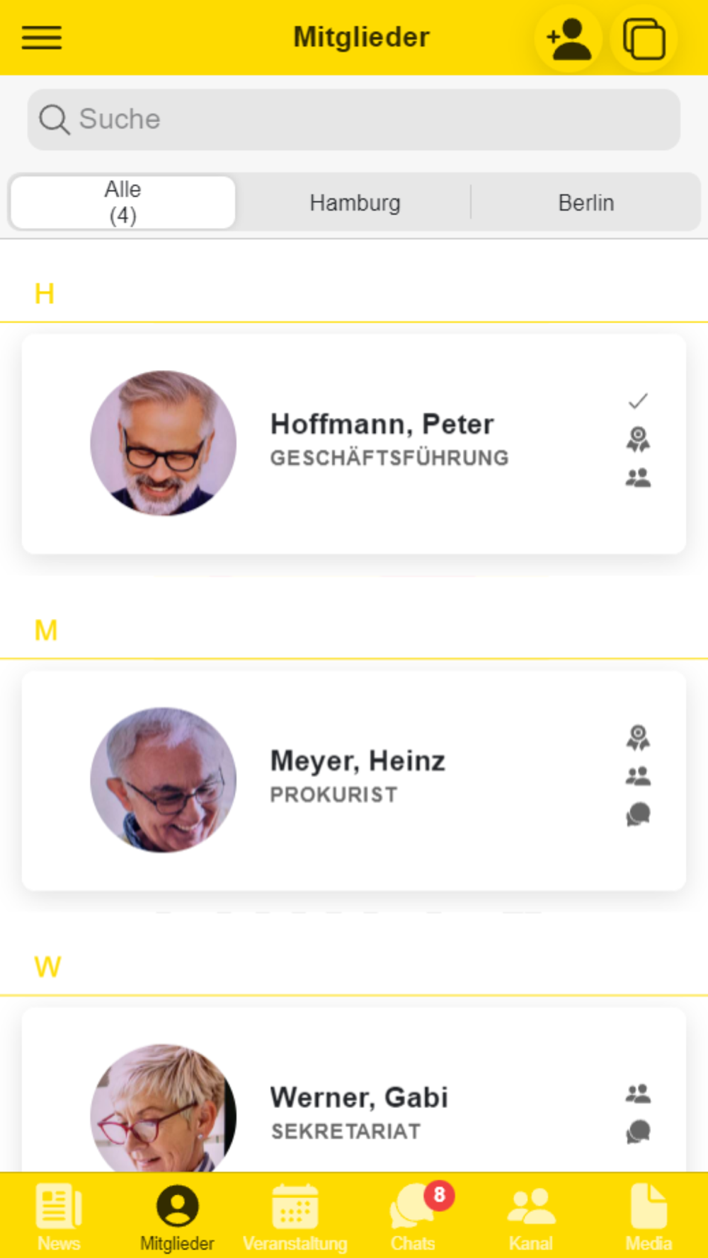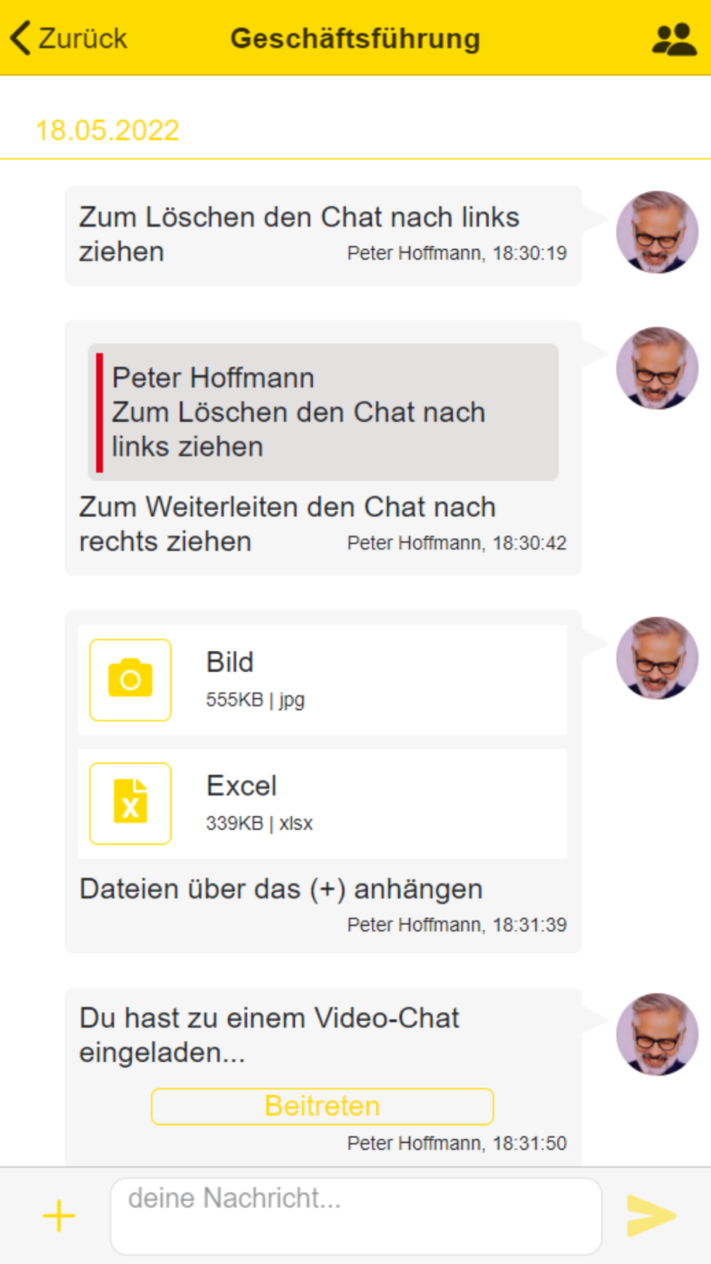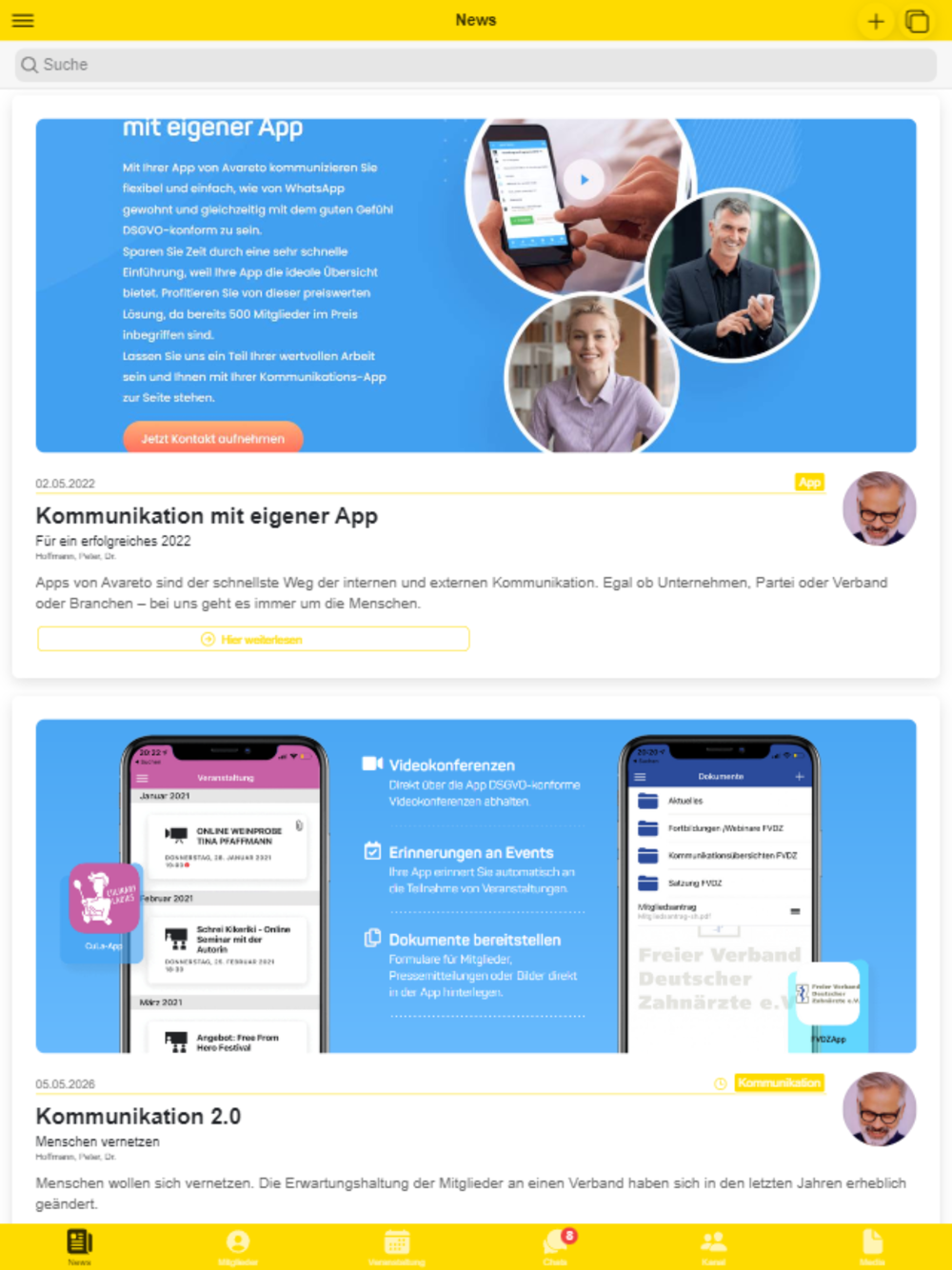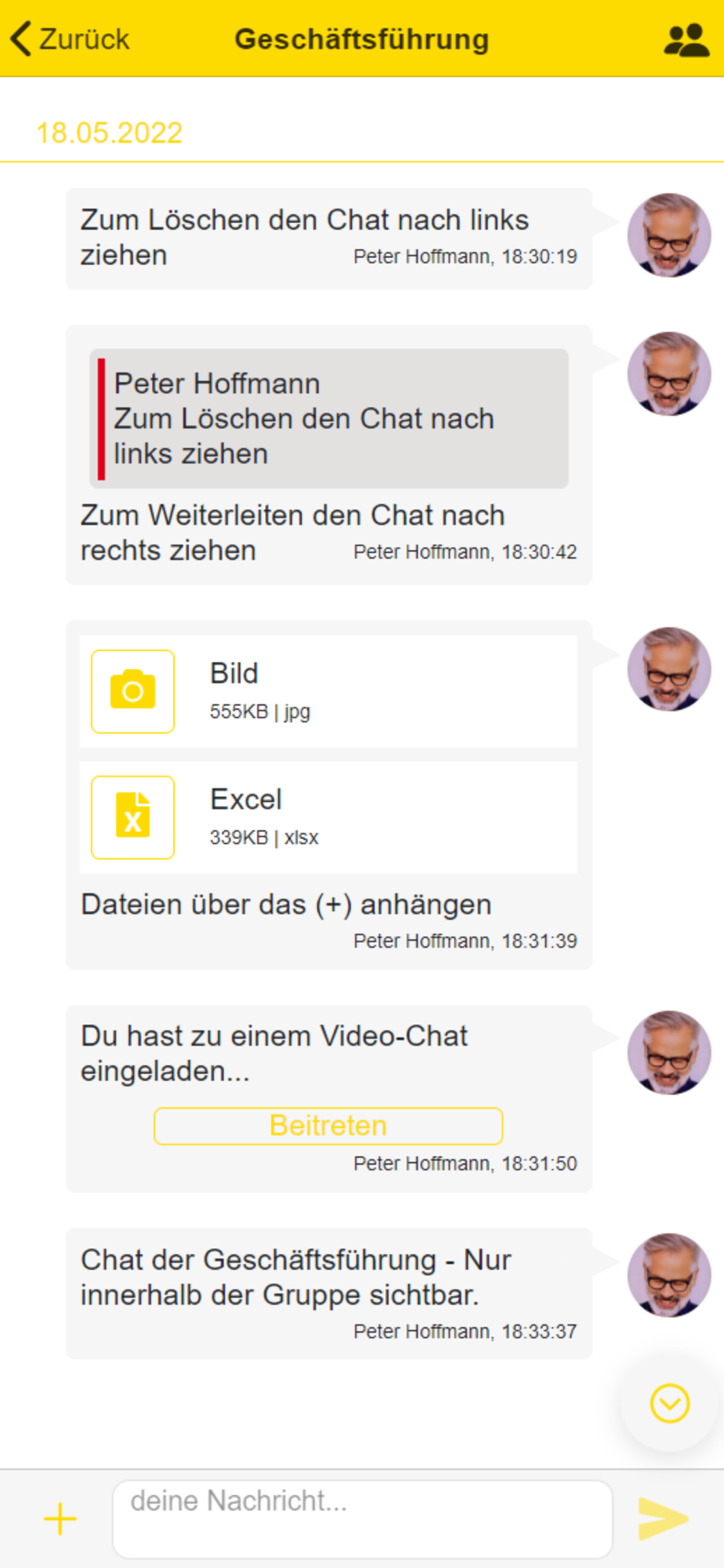 Egal ob Termindienst, Vorbereitung der Arbeit unserer Arbeitsgruppen oder die Planung und Realisierung der Ausbildung, mit dieser App ist der schnelle Austausch der Informationen jeder Zeit möglich.