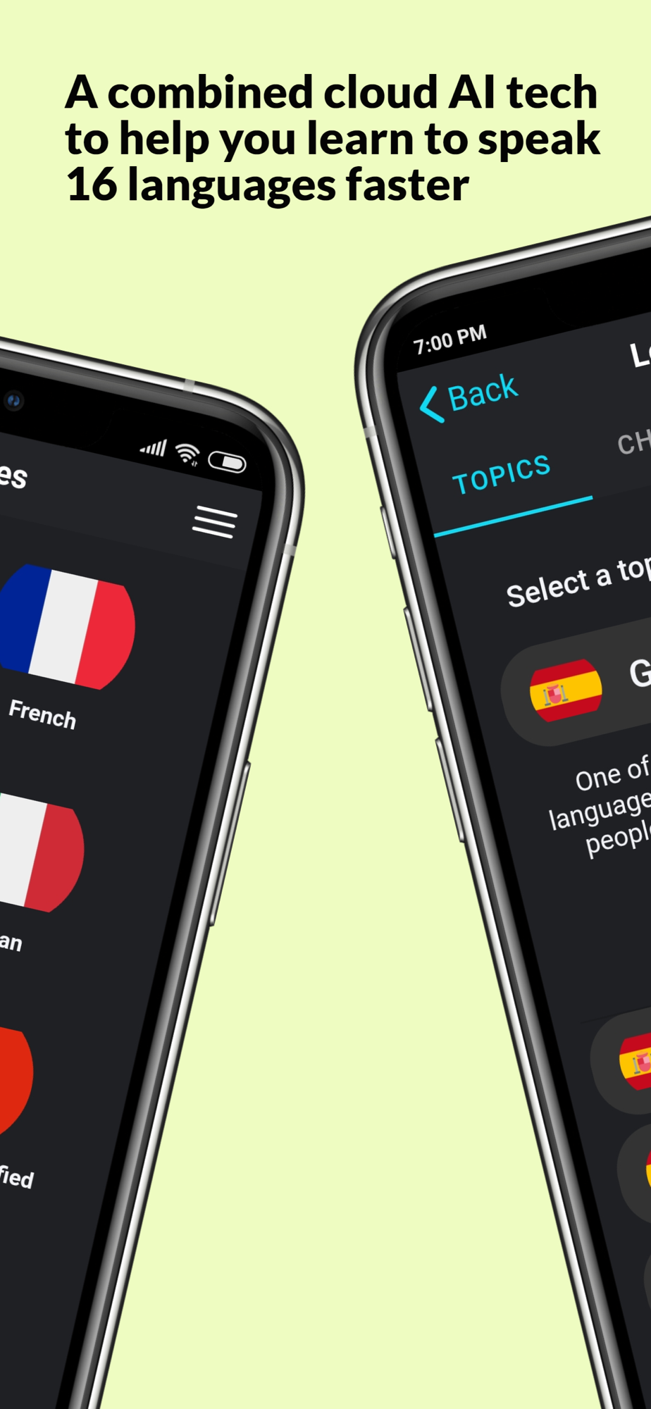 LanguageChat App: A Combined Cloud AI Tech To Help You Learn To Speak 16 languages 10x Faster. LanguageChat App wants to change the way you should learn a language forever! You could be addicted to it.