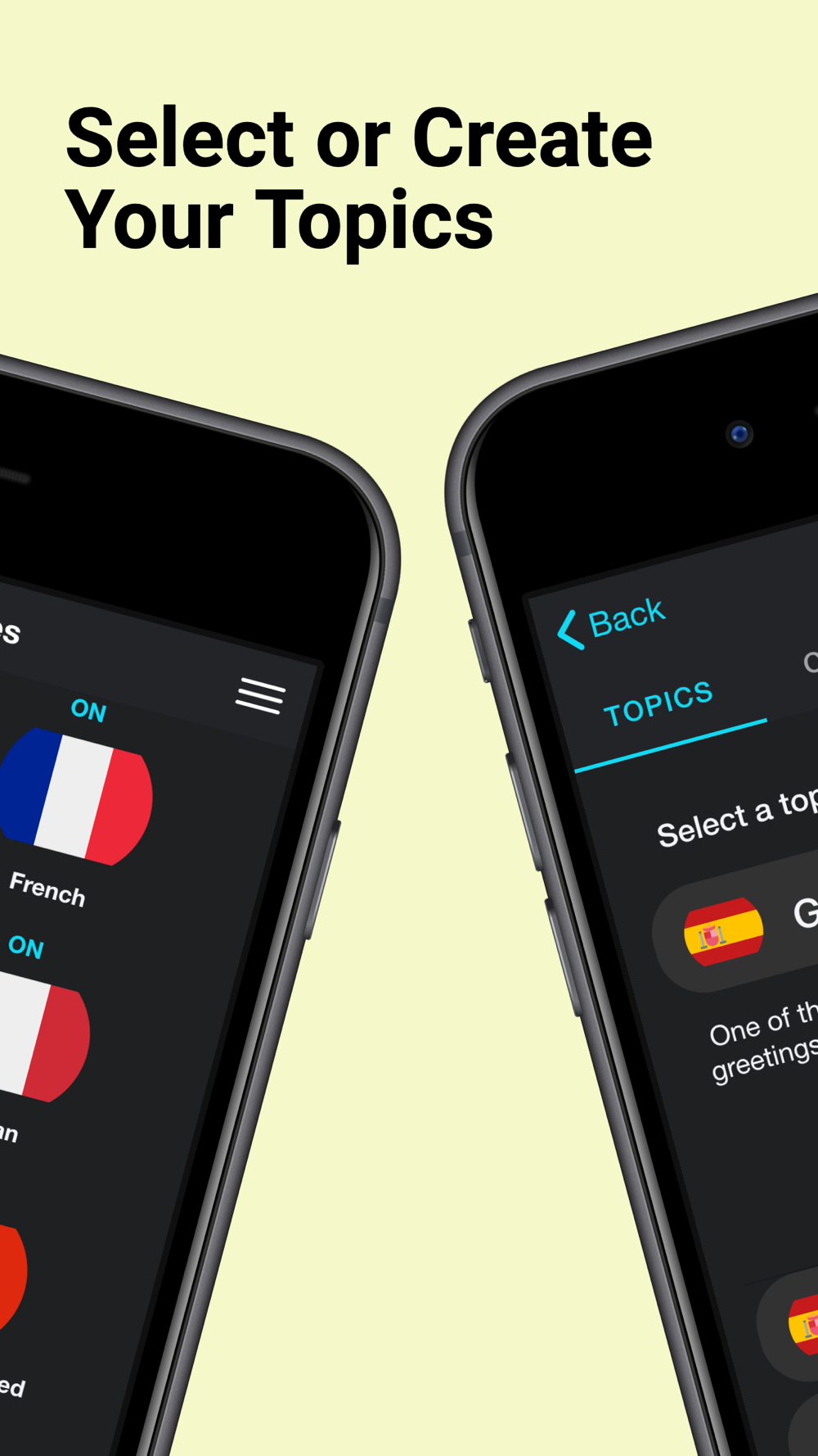 Learn Spanish, French, German, Italian, Russian, Portuguese, Chinese, Japanese, Korean, Turkish, Dutch, Danish, Swedish, Polish, Norwegian, Arabic, Hindi or even English by chatting, listening and speaking.