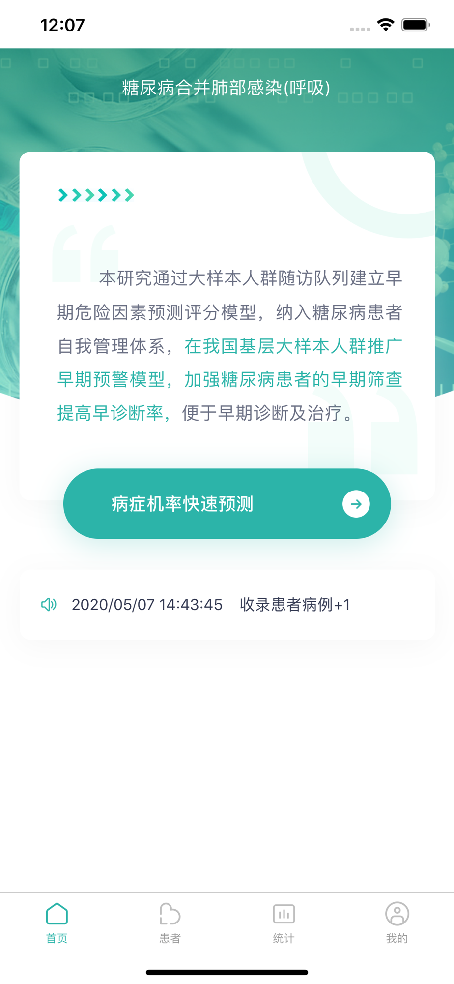 通过简单预测小工具,帮助实现快速病症机率检查。上海复旦大学附属瑞金医院呼吸与重症医学科专注于为广大医疗人员提供一站式的知识和工具服务,为医疗人员提供权威的逻辑缜密预测诊断模型,实用的病症机率快速预测小工具,收录档案方便进行患者管理和随访!