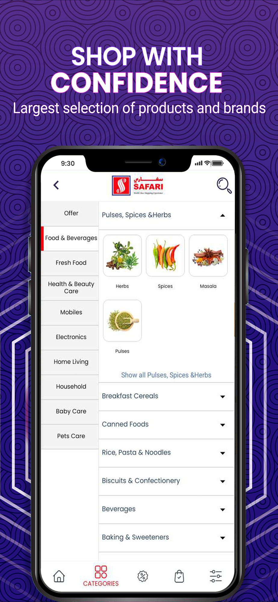 The Safari Shopping app makes your life easier. Shop your groceries, home appliances, electronics and more. You can find out the latest Promotions and Deals in our stores (Safari Hypermarket, Safari Shopping complex, Safari mall and safari Webstore), and enjoy world class shopping experience.