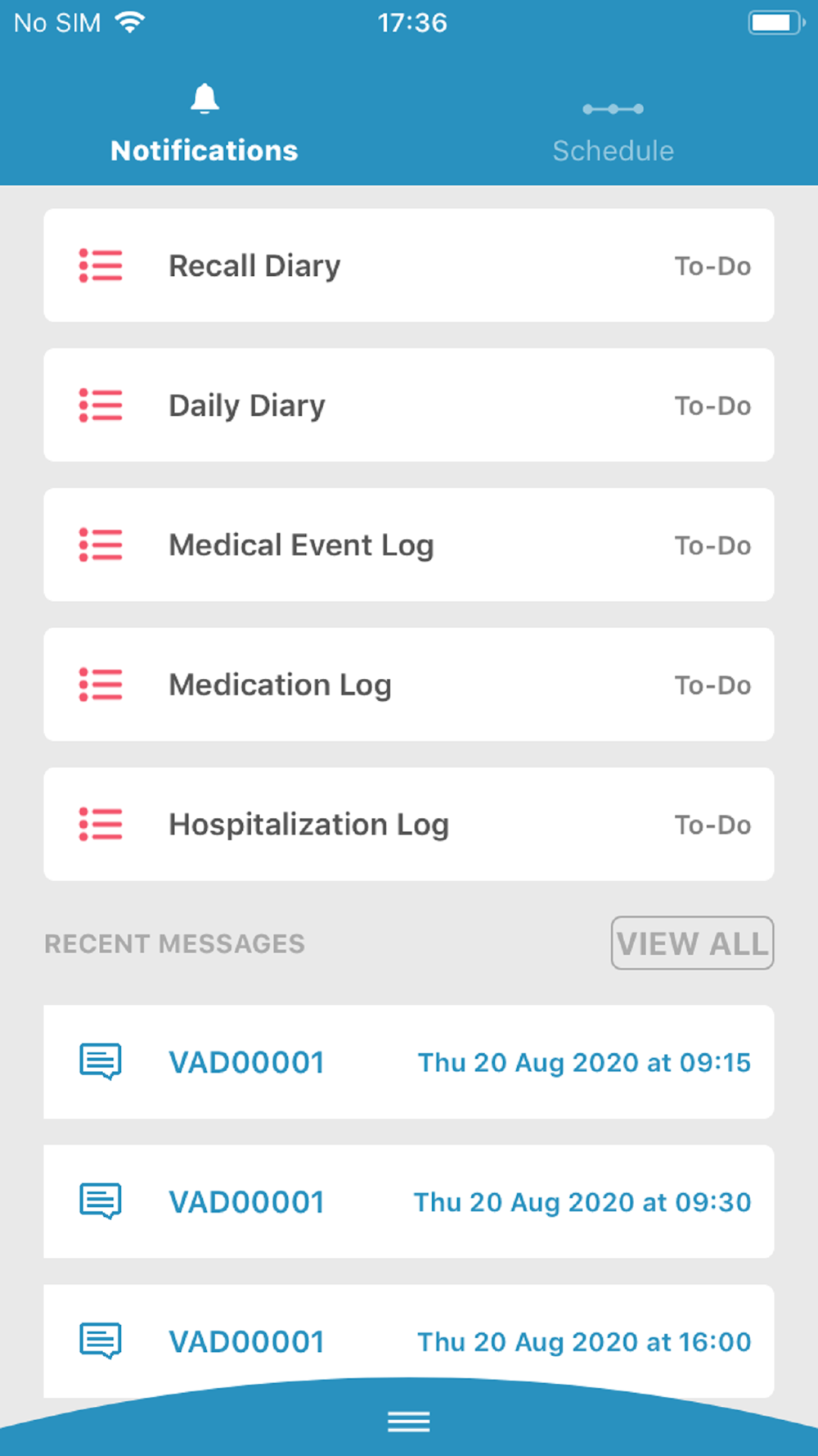 Sanofi VAD00001 Digital Patient App is intended for use collect patient reported outcomes relating to a clinical trial. Patients must be given accounts by a participating site in order to log in to the app.