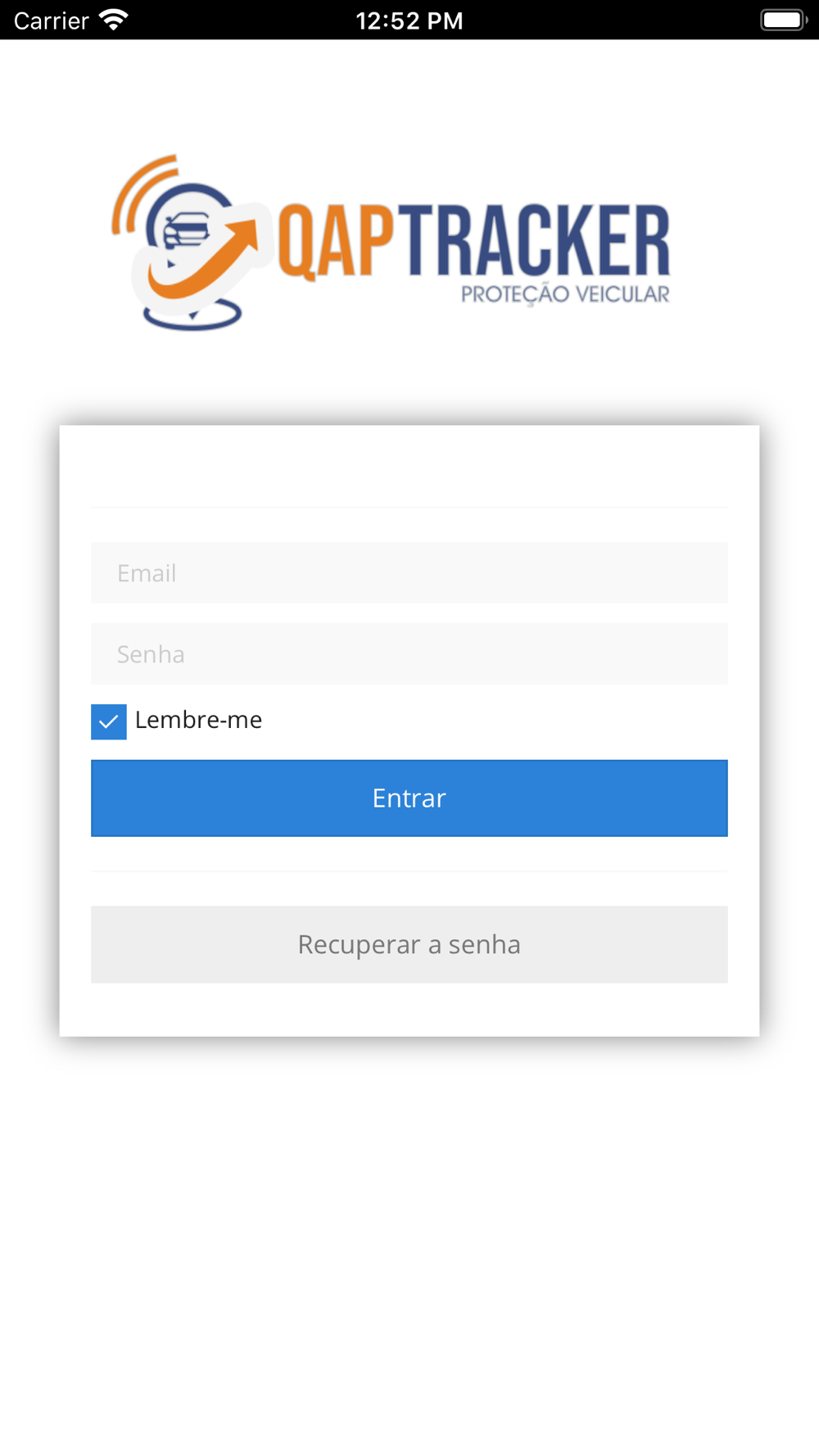 Para usar o aplicativo QAP Tracker, você deve usar o mesmo nome de usuário e senha usado para acessar a plataforma de rastreamento web.