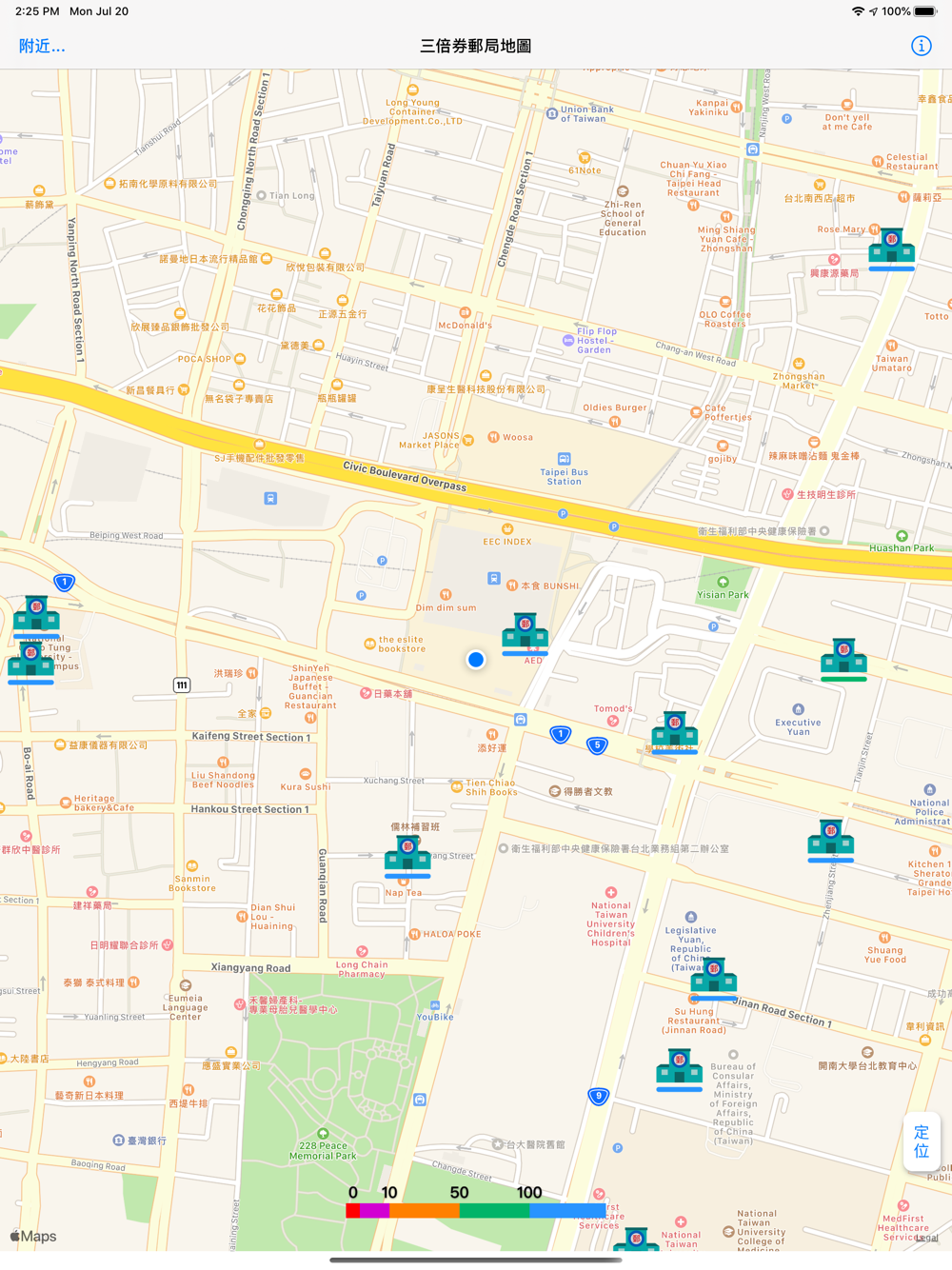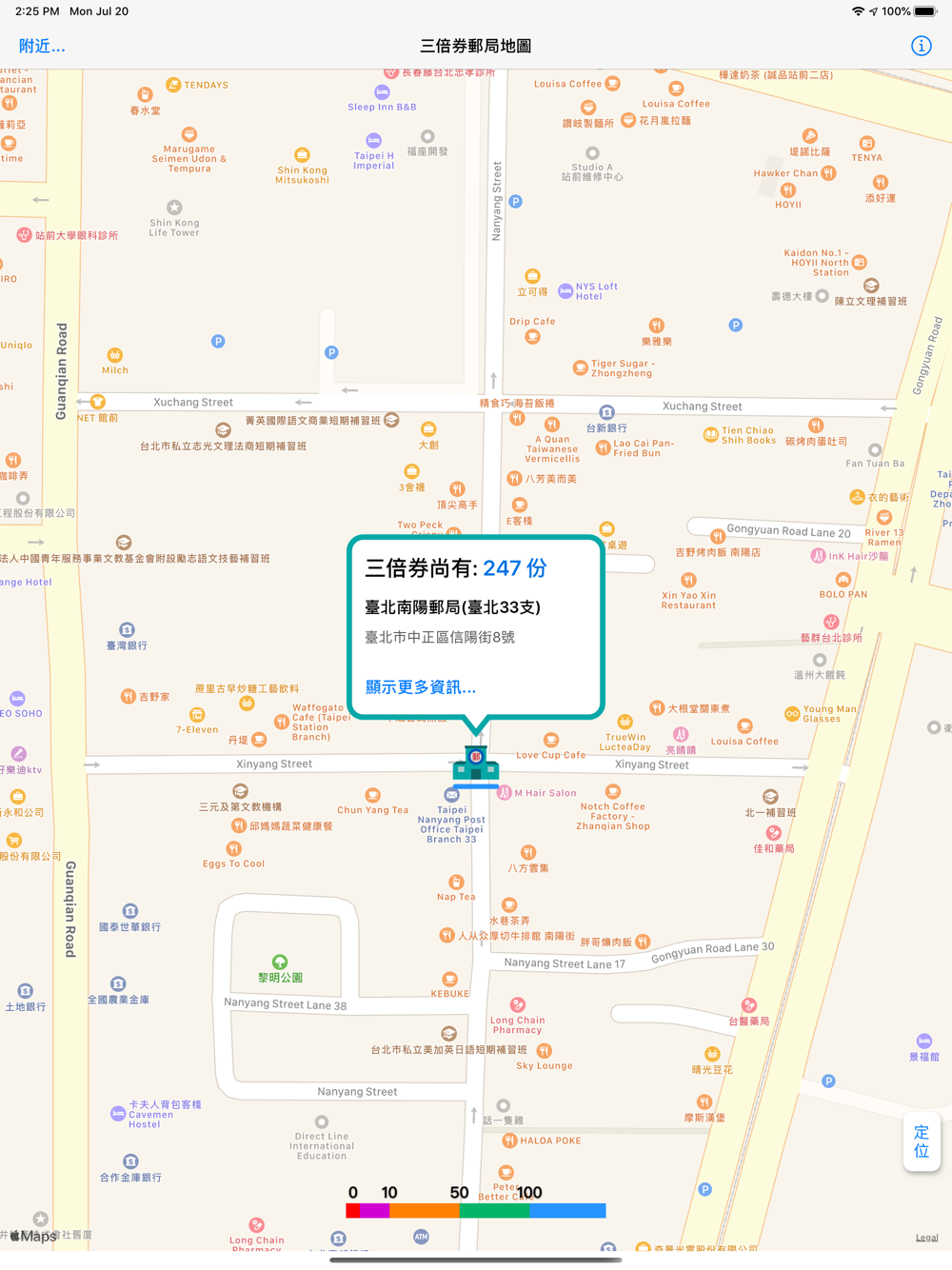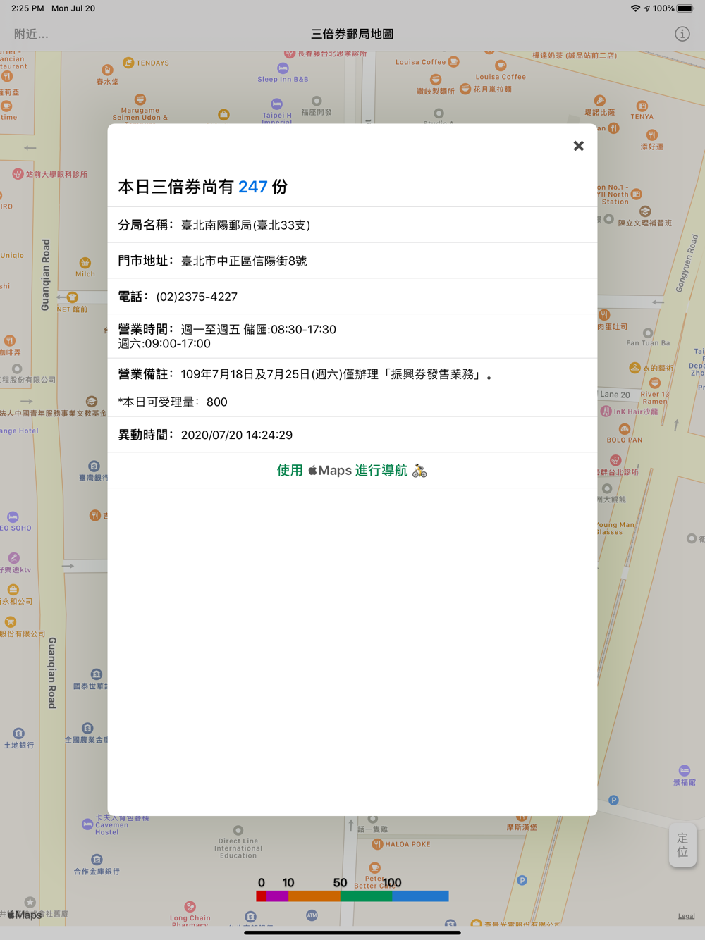 以地圖的形式顯示台灣郵局的即時三倍券領券量。