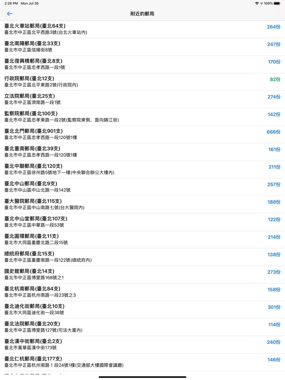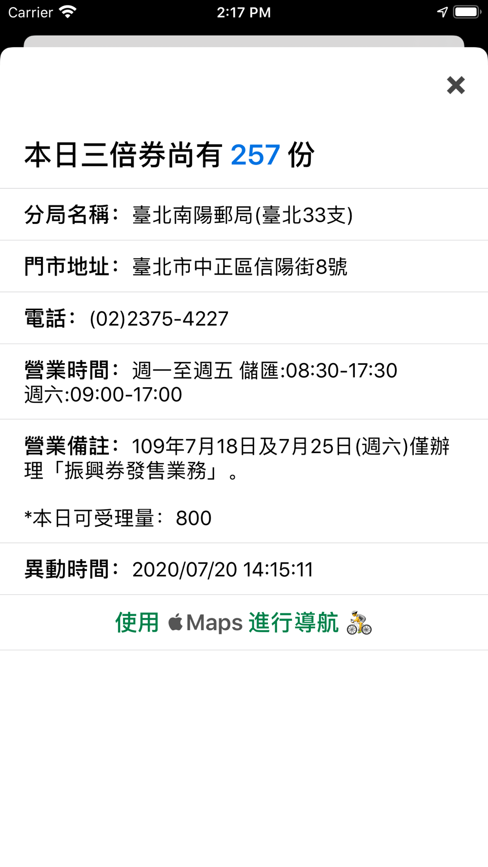 - 新增功能:點按郵局資訊頁面的電話號碼,可撥打電話。