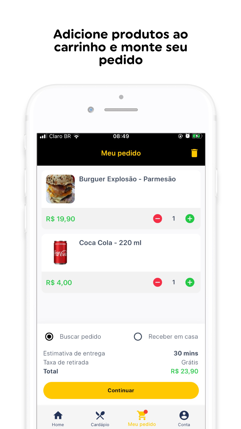 No app, você encontra o cardápio completo dos estabelecimentos e ainda pode utilizar a ferramenta de busca para localizar diretamente os produtos que você deseja. Isso tudo de forma prática e rápida. Além disso, no app você fica por dentro de todas as nossas promoções e tem acesso exclusivos à descontos especiais!