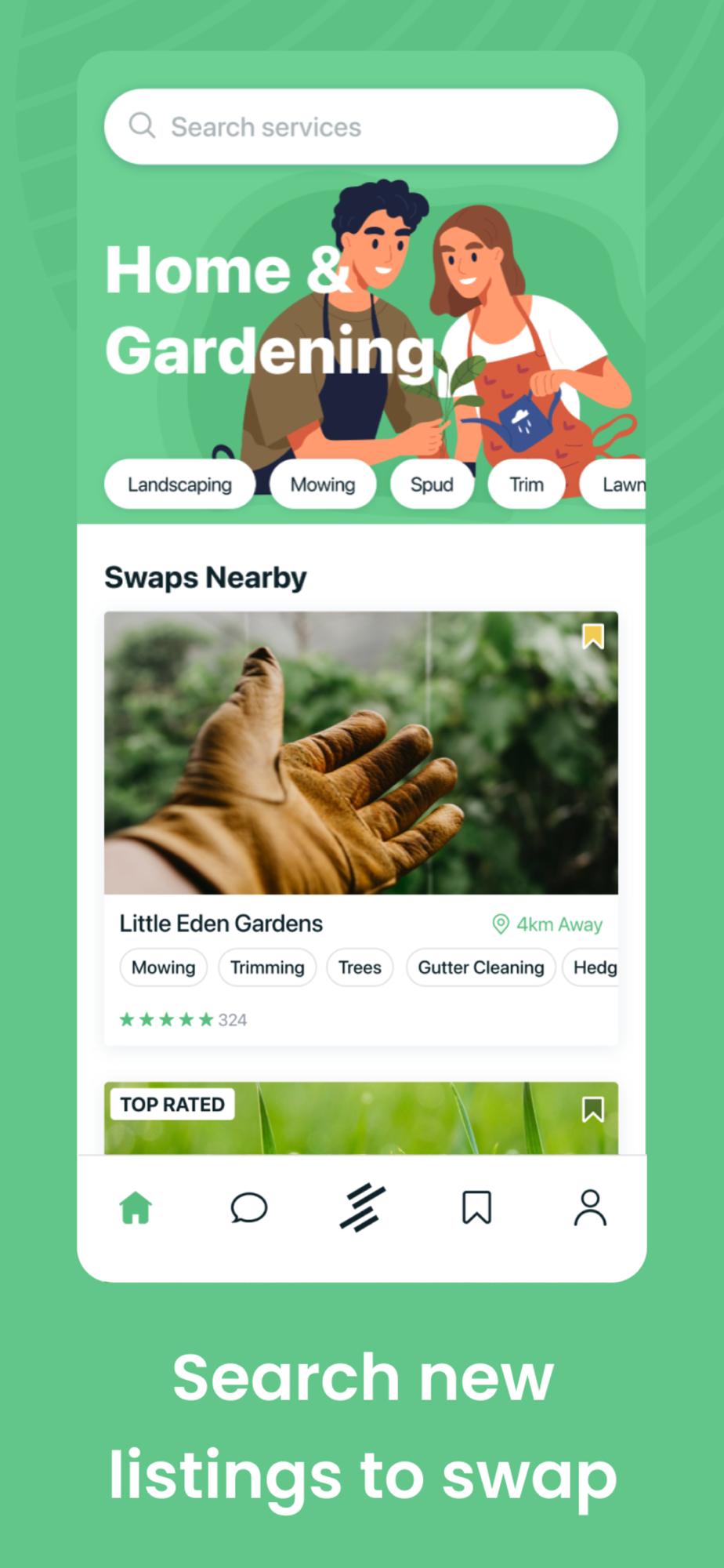 Search and swap your products or services Australia-wide. Find everything from gardening to home maintenance, building to fitness, furniture to per care directly on the app. If you have a product or service, get listed and start swapping on our app today.