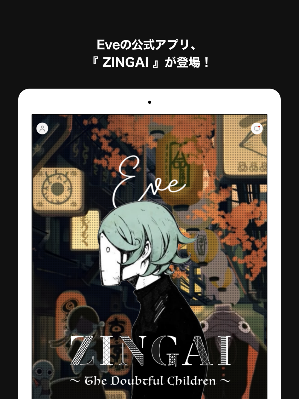 『ZINGAI』ではEveの最新情報やLIVE情報などの公式情報はもちろん、謎謎を解いたりZINGAIの補完やEveのアートイラストをコレクションしてEveの世界を楽しむことができます。