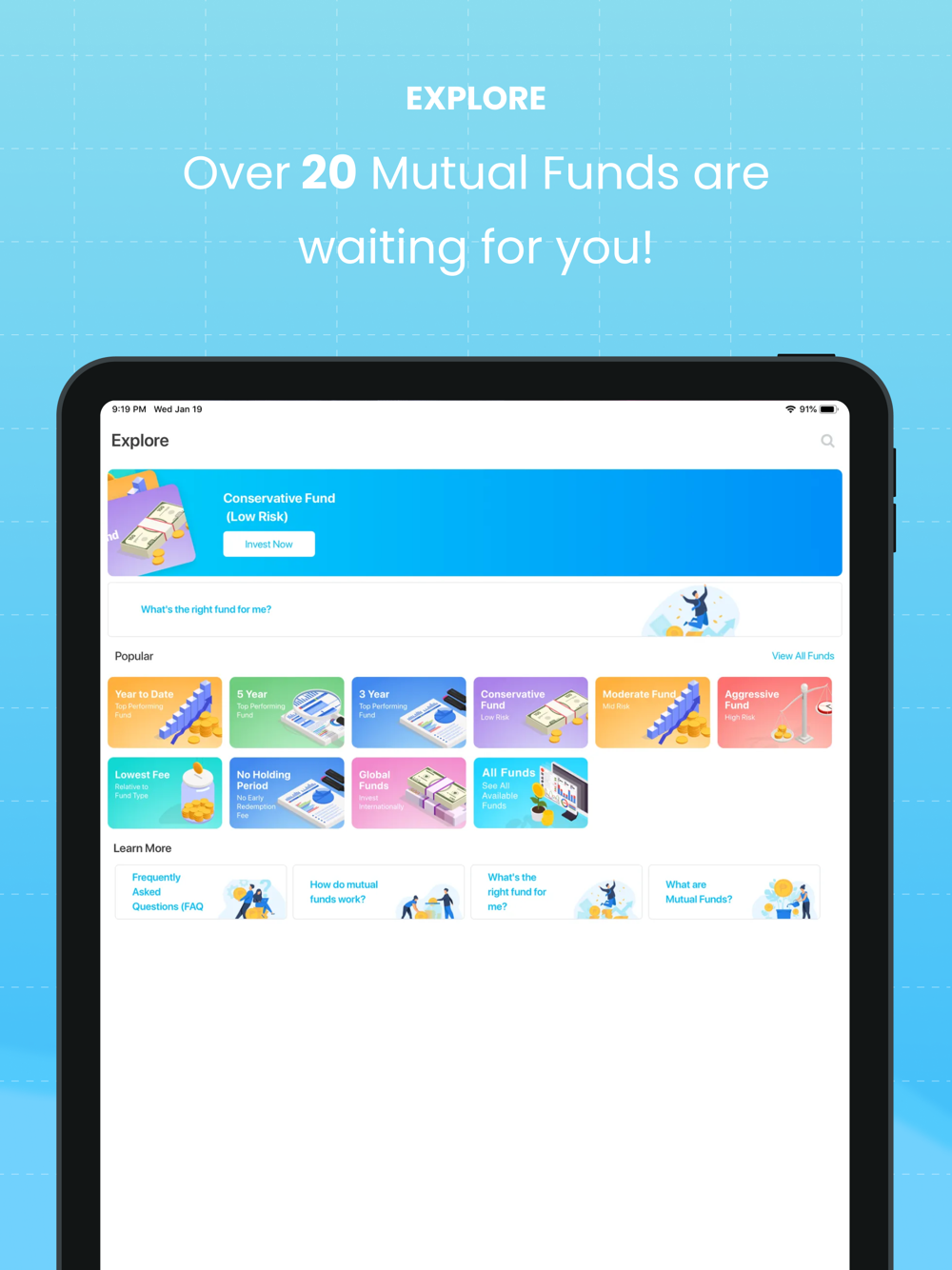 Easily choose the best fund for you from over 20+ funds using our custom list and filters.