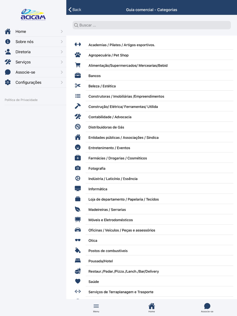 Acicam Guia Comercial é um aplicativo que disponibiliza, de maneira prática, informações sobre serviços da entidade e estabelecimentos comerciais da cidade de Carmo da Mata - MG.