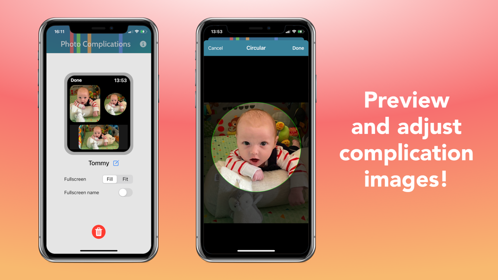 • Adjust image positions and zoom in, for complications and when fullscreen